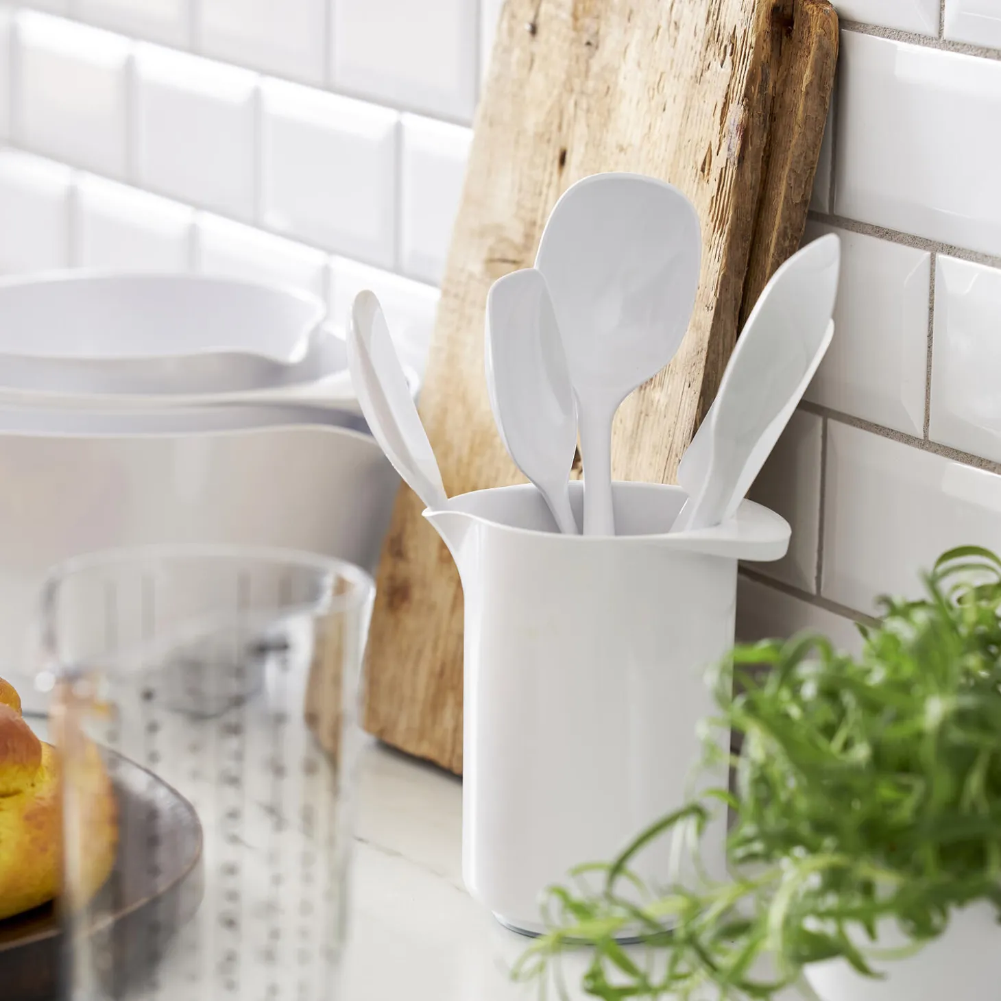 Rostis store serveringsske har et stort, dybt hoved i en skrå vinkel på skaftet. Længden er 30 cm, og skeen er ideel til opøsning af f.eks. kartofler og grønsager – lige til at stikke i skålen eller gryden og sætte på bordet.Rosti-sortimentet indeholder et væld af redskaber i forskellige størrelser, udformninger og farver. De fås i de samme farver som Margrethe-skålene, så det er altid muligt at matche skåle og redskaber eller alternativt lave sin egen spændende farvekombination. Classic-produkterne produceres i Durostima®, et langtidsholdbart plastmateriale med mange gode egenskaber, f.eks. er de mere brudsikre og tåler kortvarig varmepåvirkning op til 150 °C. Vi anbefaler, at redskabet altid fjernes fra panden eller gryden, når det ikke er i brug. Velegnet til opvaskemaskine. 5 års garanti.