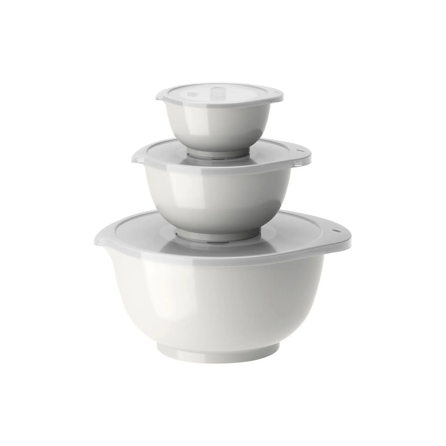 Margrethe røreskålesæt fra Rosti i 3 af de mest anvendte størrelser. Sættet indeholder 0,25 + 0,75 + 3 liter Margrethe-skåle med tilhørende låg.Margrethe-skålen er den klassiske røreskål med det gode greb, den praktiske hældetud og den skridsikre bundring. Den nye version af Margrethe-skålen er fremstillet af plastmaterialet Durostima®. Skålen er nu endnu stærkere og mere brudsikker, og med det nye materiale kan den også tåle mikroovn og fryser. Margrethe-skålen er velegnet til såvel tilberedning som servering, og tilkøbes der låg, er røreskålen omdannet til en praktisk opbevaringsskål. 5 års garanti.