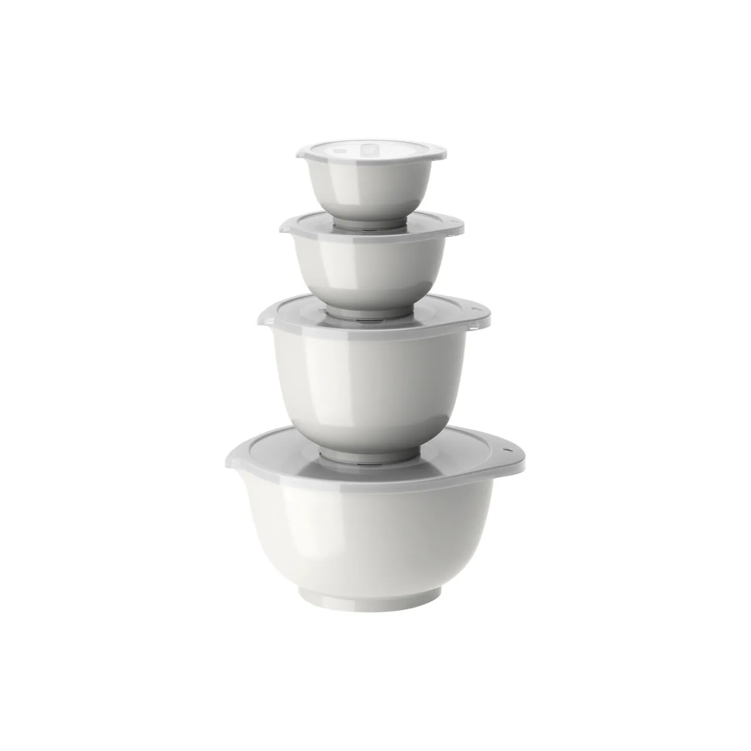 Margrethe røreskålesæt fra Rosti i 4 af de mest anvendte størrelser. Sættet indeholder 0,25 + 0,5 + 1,5 + 3 liter Margrethe-skåle med tilhørende låg.Margrethe-skålen er den klassiske røreskål med det gode greb, den praktiske hældetud og den skridsikre bundring. Den nye version af Margrethe-skålen er fremstillet af plastmaterialet Durostima®. Skålen er nu endnu stærkere og mere brudsikker, og med det nye materiale kan den også tåle mikroovn og fryser. Margrethe-skålen er velegnet til såvel tilberedning som servering, og tilkøbes der låg, er røreskålen omdannet til en praktisk opbevaringsskål. 5 års garanti.