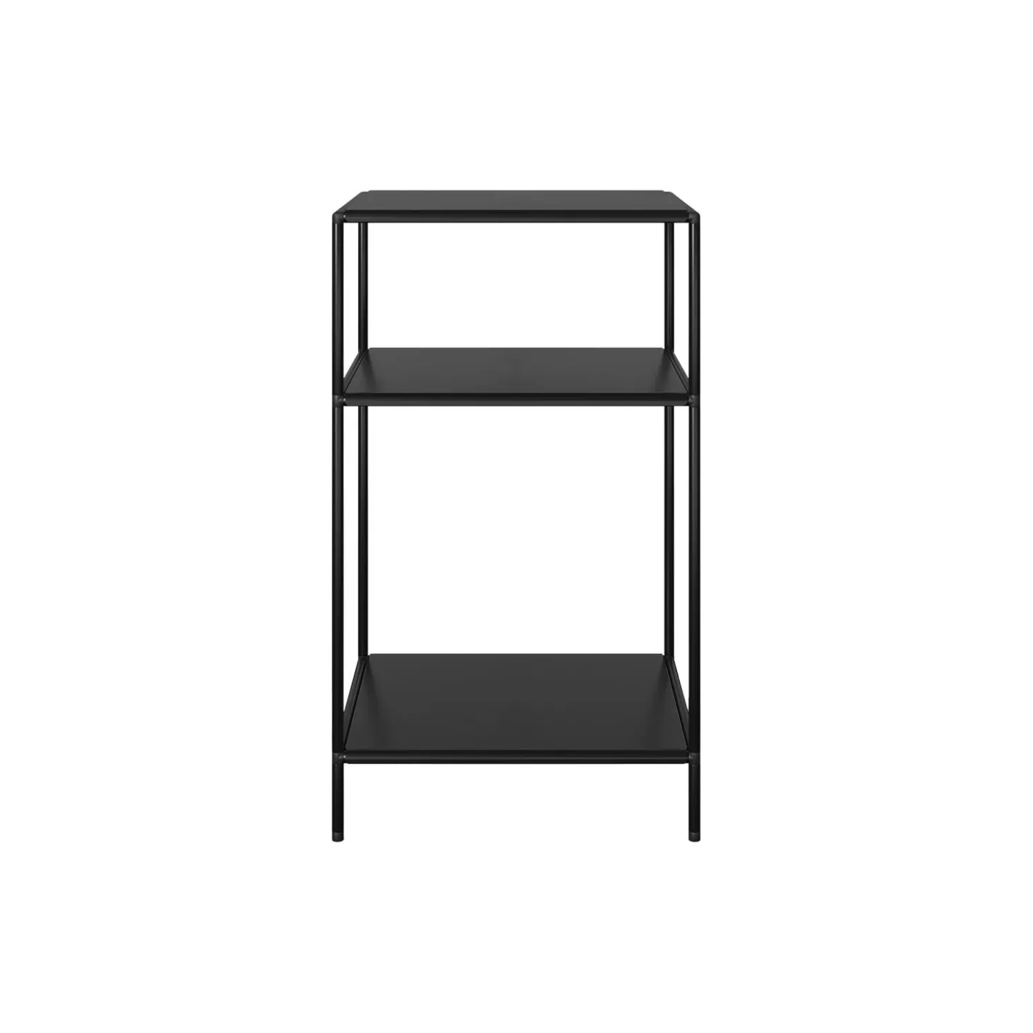 Nightstand i pulverlakeret stål med hylder i metal fra Abstracta® System. Farve: black. Mål: H: 70 x L: 40 x D: 36 cm. Design: Poul Cadovius.