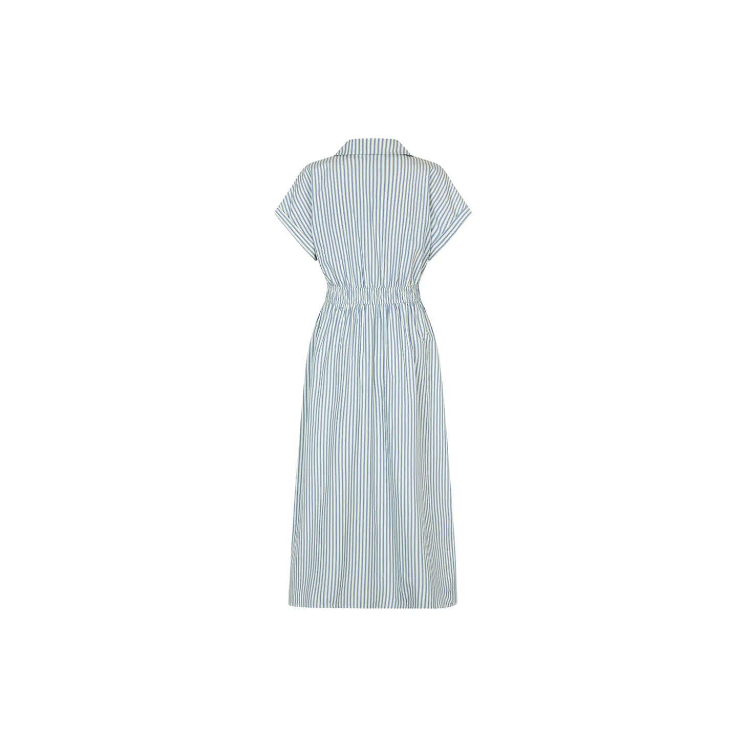 Kortærmet kjole med v-udskæring og smock i taljen. NikkoMD dress har sidelommer, knappeluknign fortil og en skjortekrave.