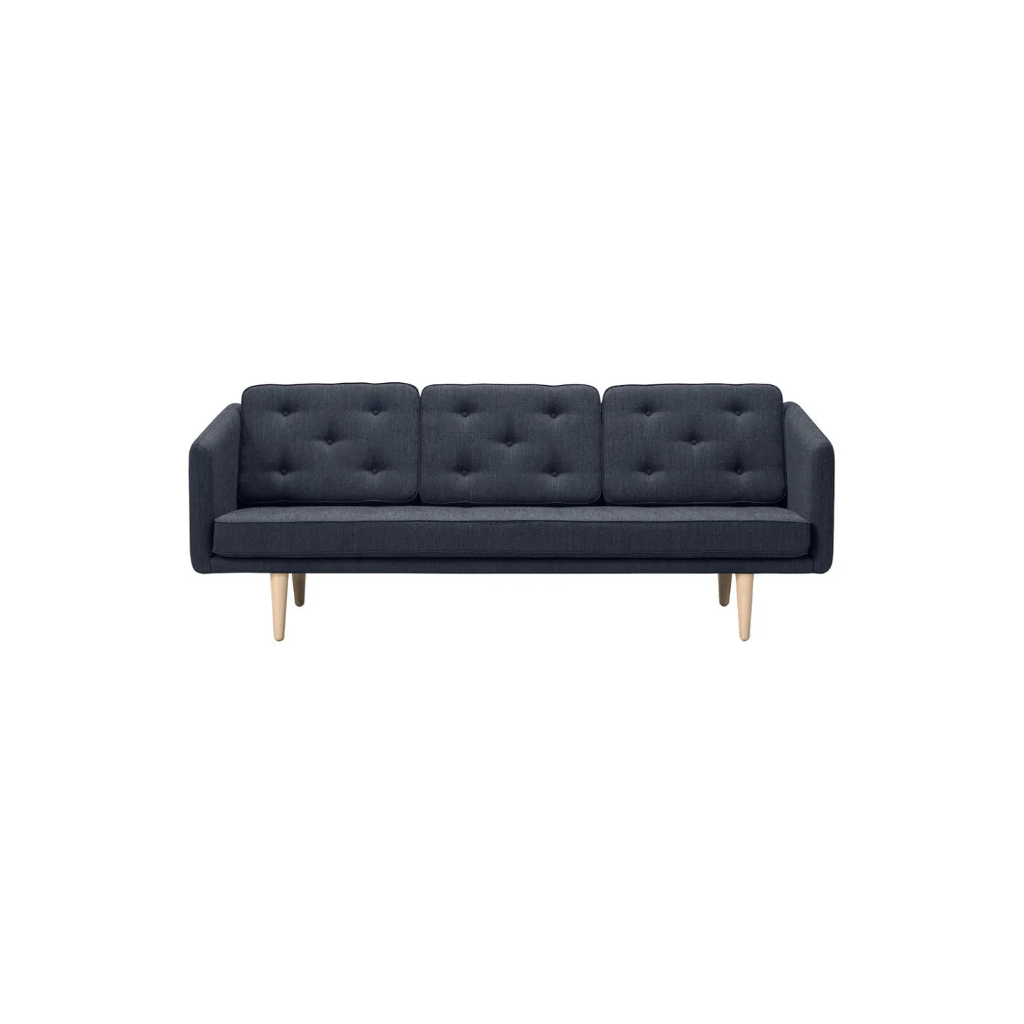 No. 1 3-pers. sofa med polstring i Fiord 782 tekstil og stel i lakeret eg fra Fredericia. Farve: Fiord 782/lakeret eg. Mål: H: 83 x L: 206 x D: 86 cm. Siddehøjde: 42 cm. Design: Børge Mogensen.