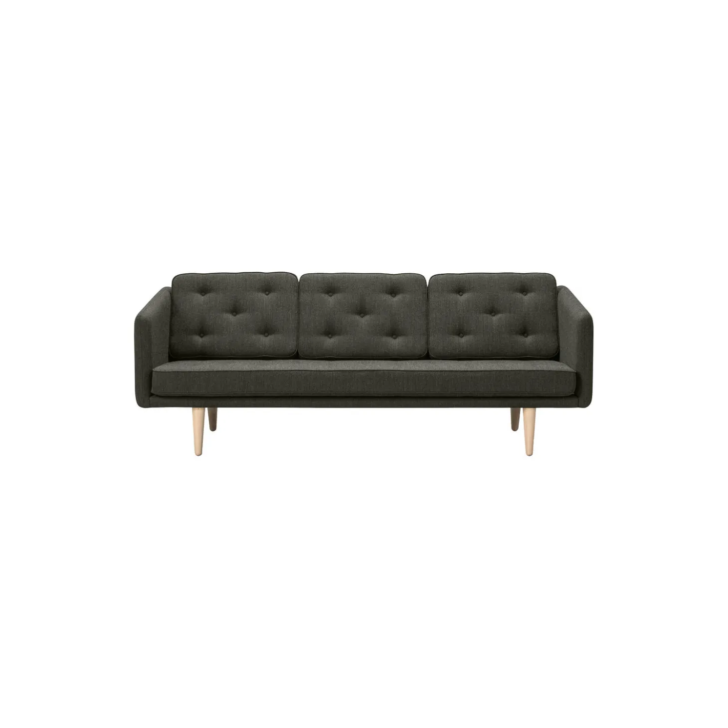 No. 1 3-pers. sofa med polstring i Fiord 961 tekstil og stel i sæbebehandlet eg fra Fredericia. Farve: Fiord 961/sæbebehandlet eg. Mål: H: 83 x L: 206 x D: 86 cm. Siddehøjde: 42 cm. Design: Børge Mogensen.