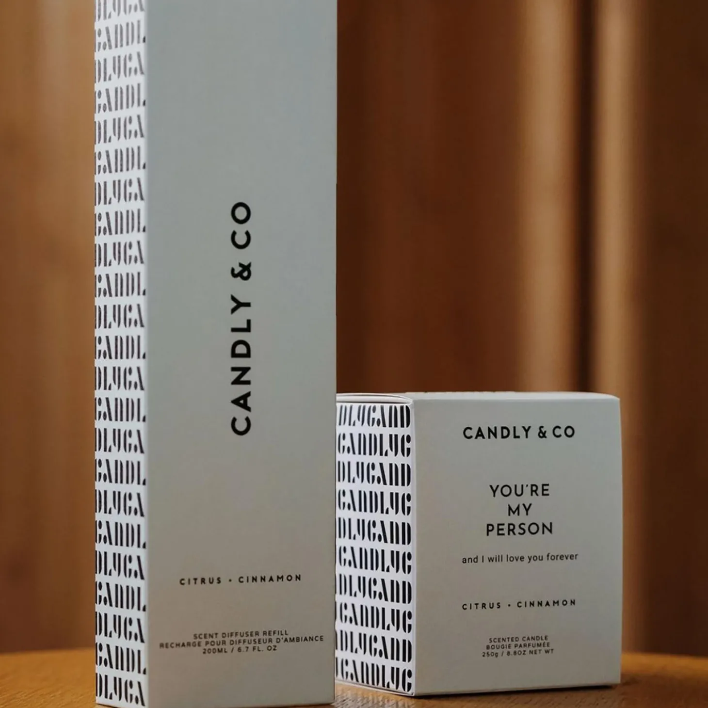 Håndlavet med omhu for dig og vores planet – økologisk og naturligt.Lavet med miljøvenlig voks. Vegansk, parabenfri og grusomhedsfri. Duftene, der er specielt fremstillet til Candly, stammer fra Grasse – parfumeverdenens mekka. Med en bemærkelsesværdig 20 % koncentration af fransk parfumeessens er duften usædvanligt udholdende og intens – selv når lyset ikke er tændt. Brændetid over 60 timer.Topnoter: Frisk citrus, krydret kanelHjertenoter: Blomsterrig, sød vaniljeBundnoter: Cedertræ, Amber
