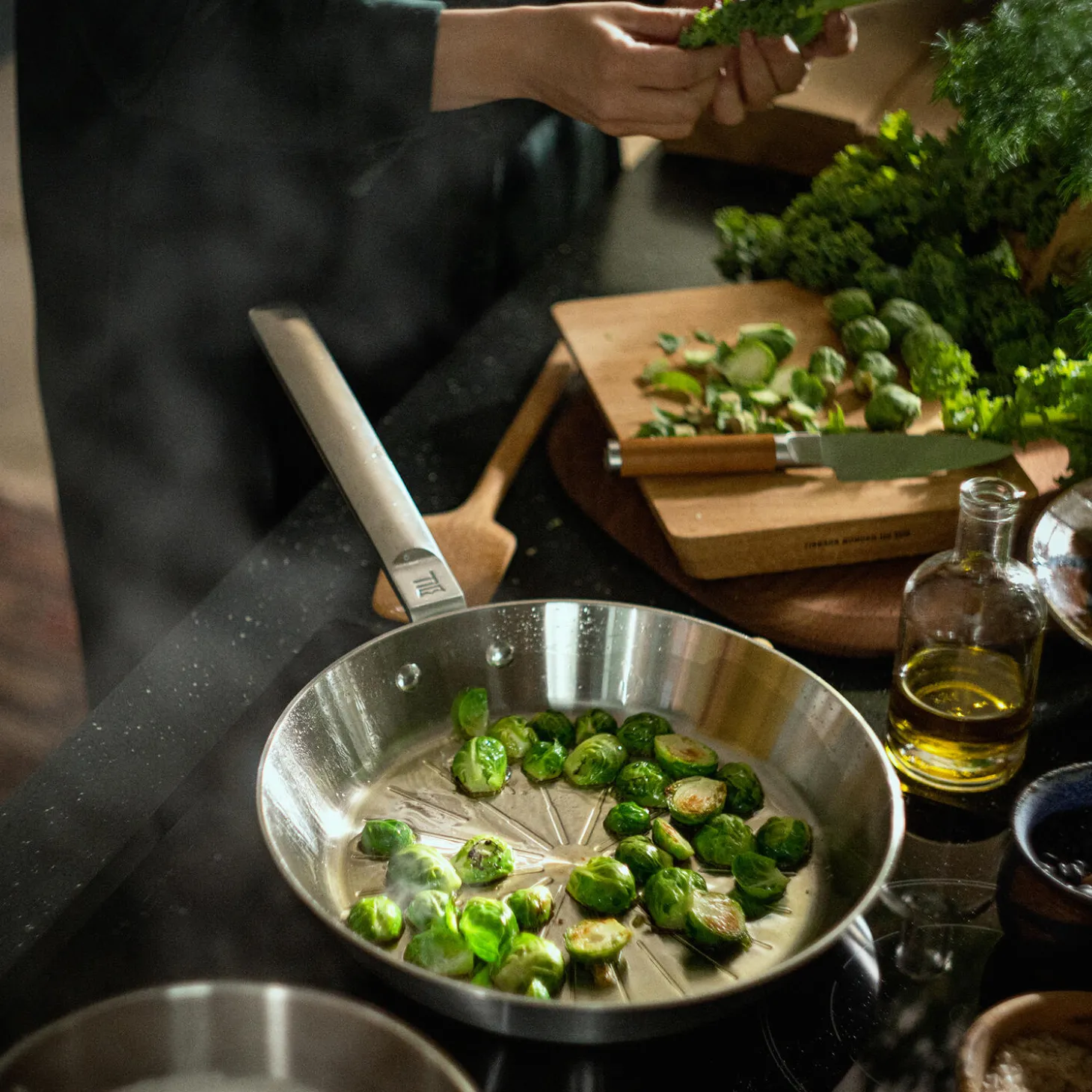 Fiskars Norden kogegrej i stål af højeste kvalitet udspringer af mange års håndværksmæssige traditioner med dybe rødder i den nordiske muld og er et godt eksempel på langtidsholdbart nordisk design, inspireret af naturen. Norden stegepande i stål uden belægning (28 cm) har en tyk bund og en 3-lagskonstruktion fra kant til kant, der sikrer en jævn varmefordeling og gør panden særdeles velegnet til stegning ved høje temperaturer, når du ønsker en sprød stegeskorpe. Aluminiumskernen mellem de ydre og indre lag af rustfrit stål sikrer jævn og effektiv varmefordeling på alle kogezoner. Et indgraveret mønster i bunden af panden giver en mere jævn fordeling af madlavningsolie/smør. Det markante håndtag i rustfrit stål minimerer overførslen af varme. Maks. stege- og ovntemperatur helt op til 270°C. Fremstillet i Finland.