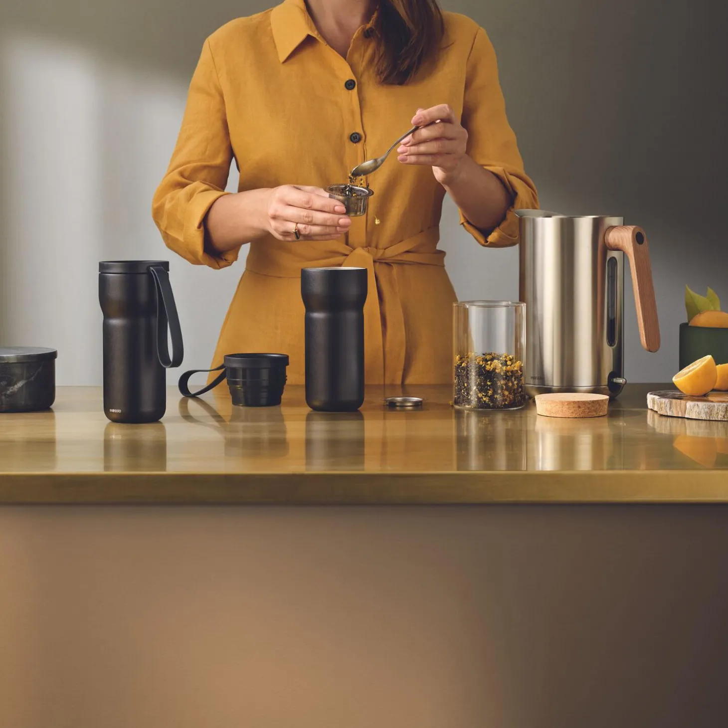 Nordic Kitchen serien af køkkenudstyr passer perfekt ind i det nordiske køkken. Bryg og nyd din te i Nordic kitchen termotekop, der er dobbeltvægget med vakuum, og som holder teen varm i mange timer. Det indbyggede tefilter i låget gør det nemt at brygge yndlingsteen direkte i koppen. Den holder 100% tæt og er nem og praktisk at tage med på farten. Størrelsen passer i de fleste kopholdere, og det funktionelle låg med klik-funktion gør det muligt at betjene koppen med blot én hånd. Brug også koppen uden tefilteret til varm kaffe eller koldt vand. Den tåler maskinopvask.