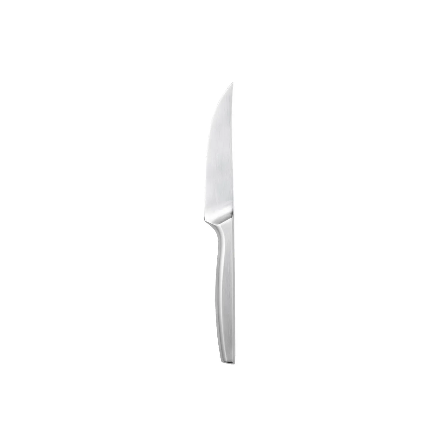 Norm steakkniv fra Gense. Ordet Norm beskriver noget, der er almenmenneskeligt og eviggyldigt, og som alting efterfølgende bygges på. Genses bestik Norm er skabt i samarbejde med Jacob Jensen Design, og med sine rene bløde geometrier mod håndfladen og de nærmest arkitektoniske linjer lader Norm ergonomi og balance mødes med æstetisk harmoni.