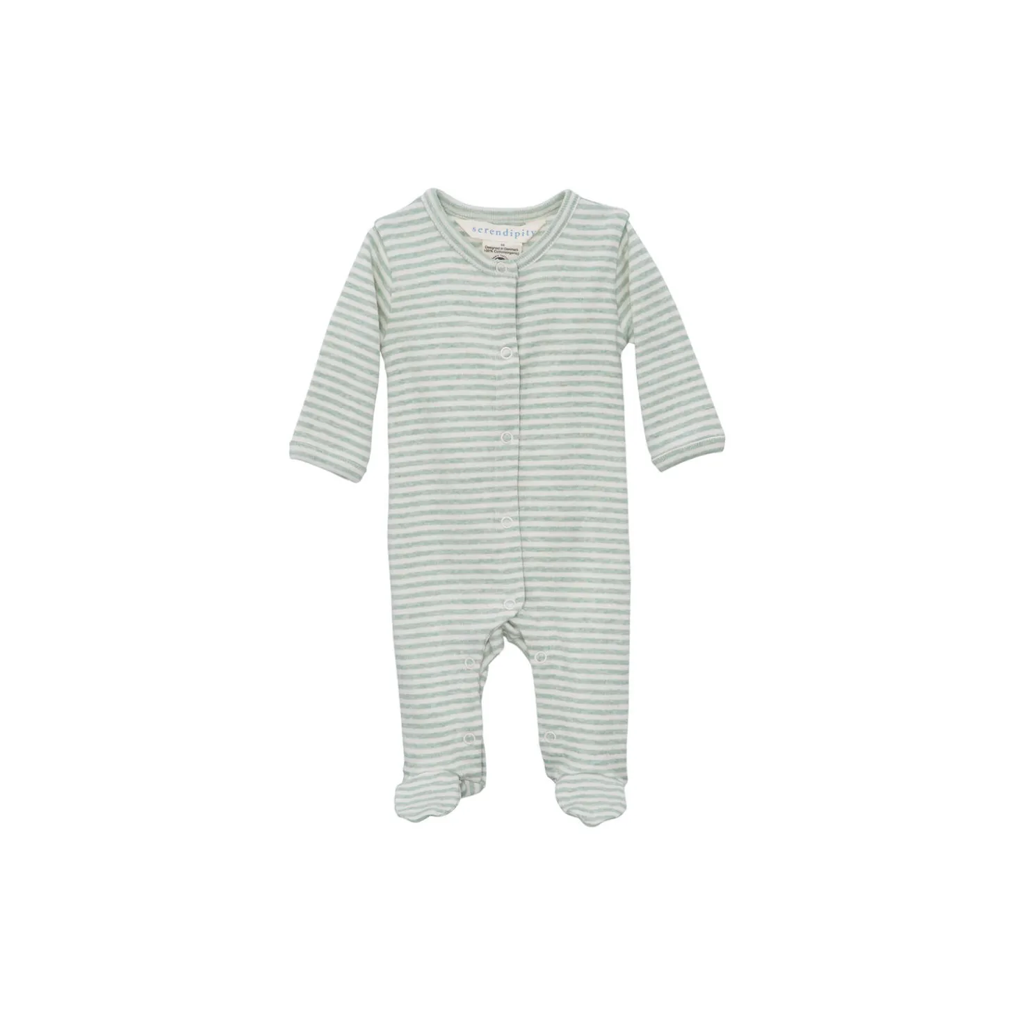 Heldragt til nyfødte i blød rib i stribet melange rib i sart grøn og offwhite. Fuld åbning foran og i ben så af- og påklædning er let. Åbnes med trykknapper. 100% blød økologisk bomuld og GOTS certificeret.