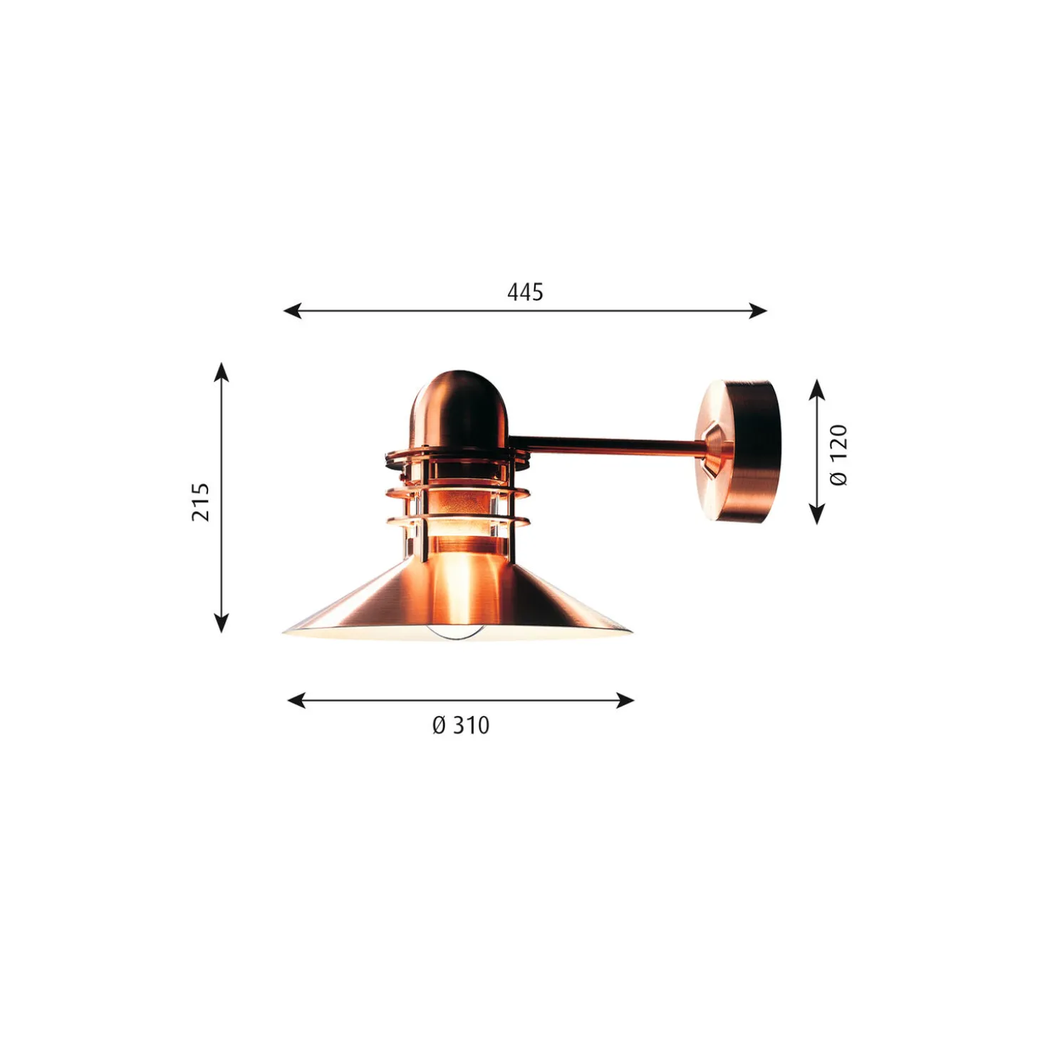 Nyhavn Væg er designet af Alfred Homann og Ole V. Kjær i 1976. Nyhavn væg blev præmieret i en konkurrence udskrevet af Louis Poulsen om belysning i ældre og bevaringsværdige byområder. Forud for denne konkurrence havde Alfred Homann arbejdet på tegninger og modeller, hvilket gjorde Homann og hans kollega Ole V. Kjær i stand til at kunne indsende materialet indenfor blot fem dage. Alfred Homann forklarer her ideen bag væg armaturet: ”Det var vigtigt, at armaturets var mindre og ikke så prangende som de resterende produkter, der var på markedet på det tidspunkt. Det karakteriske for lampen er den kegleformede skærm og de 3 afblændingsringe som medgiver et blødt oplys.