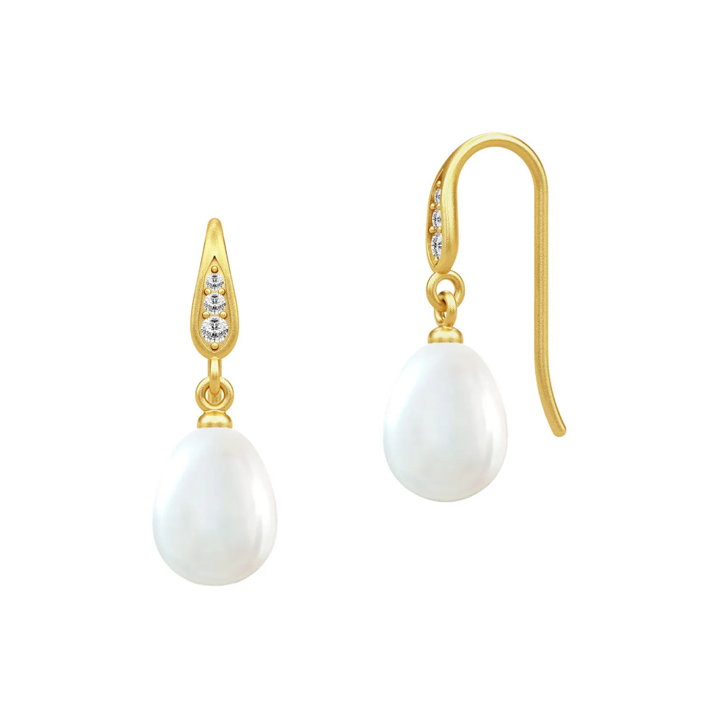 Klassisk og feminine øreringe produceret i 22 karat forgyldt 925 sterlingsølv med hvide ferskvandsperler og klare kubiske zirkoner