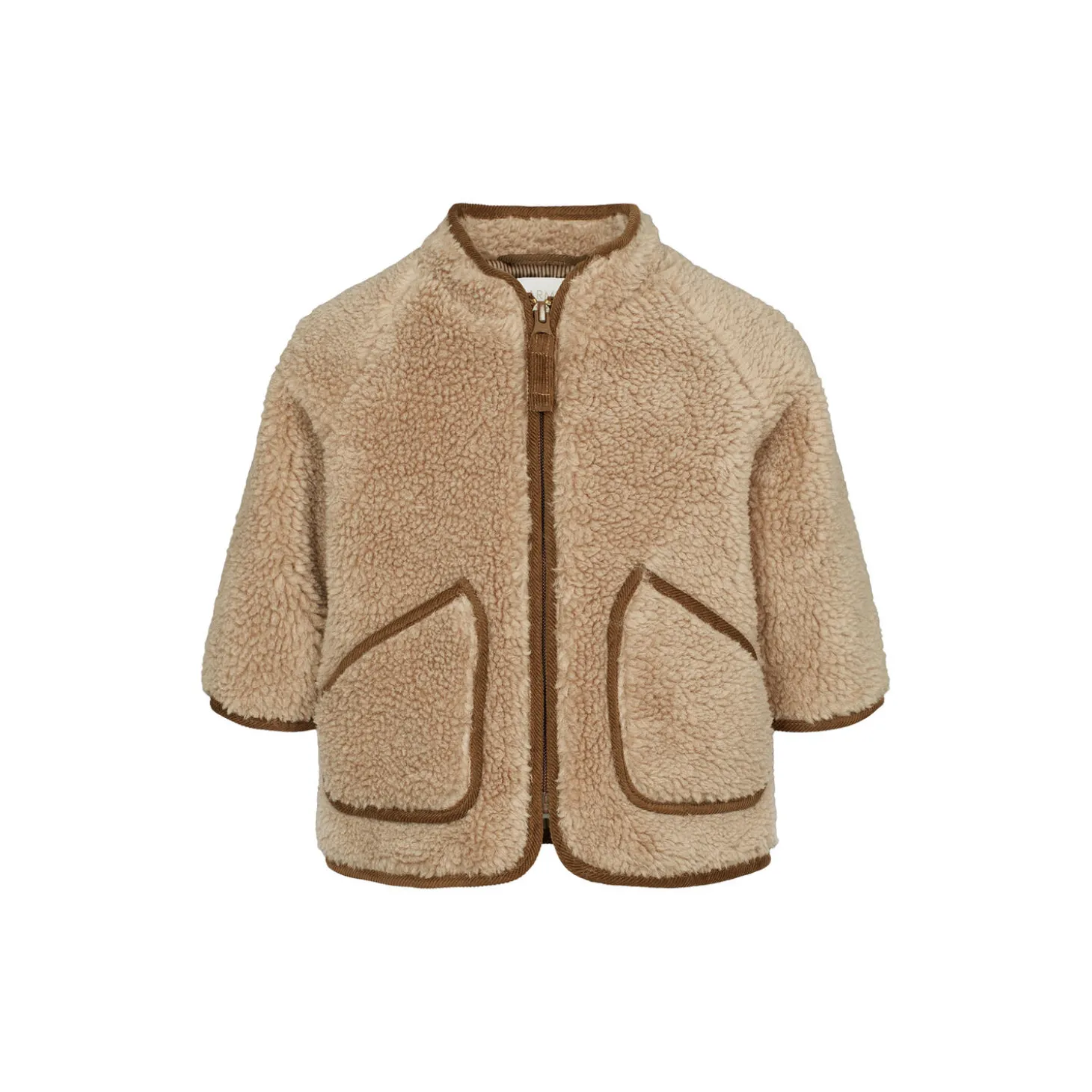 Teddy fleecejakke med lommer i siden. Jakken lukkes med lynlås.