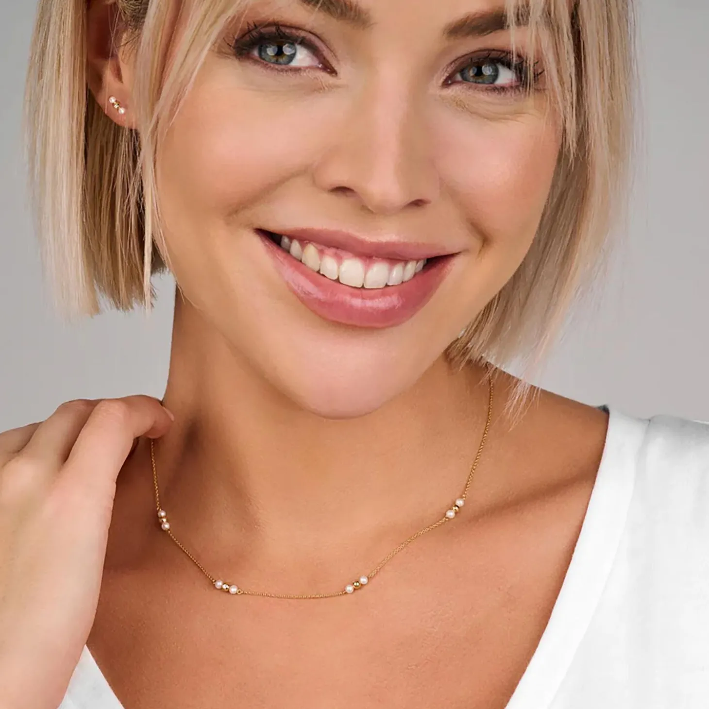 OPHELIA HALSKÆDE, guld/diamanter/ferskvandsperler