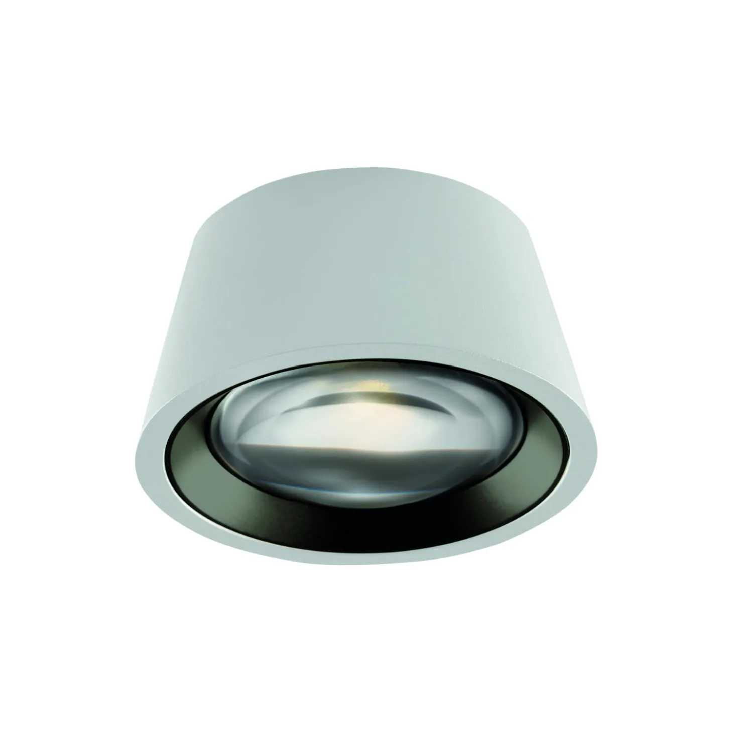 OPTIC Out 1 loftspot i aluminium og akryl fra LIGHT-POINT. Farve: hvid. Mål: H: 4,5 x Ø 8 x Ø 10 cm. Lyskilde: 6W LED. IP54. 2700K. Kan tilsluttes lysdæmper og anvendes både indendørs og udendørs. Design: Nital Patel.