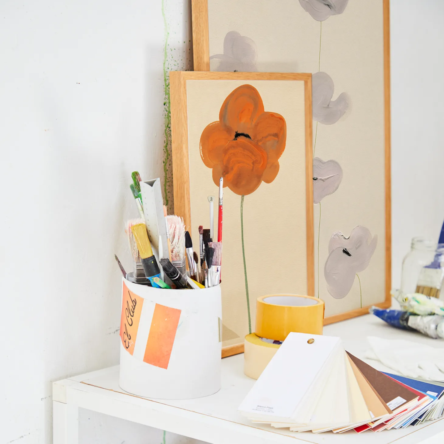 Swedish fashion illustrator Amelie Hegardt has transported her flowing forms and layered details from figures to florals. Orange Vallmo features a single blooming poppy standing tall on a thin stem. The depth of the flowering centerpiece has been created by thick, layered paint – sitting against a warm backdrop to create a vibrant and striking composition. Amelie Hegardt for Paper Collective. An art print/poster manufactured in Denmark from environmentally certified materials and production.