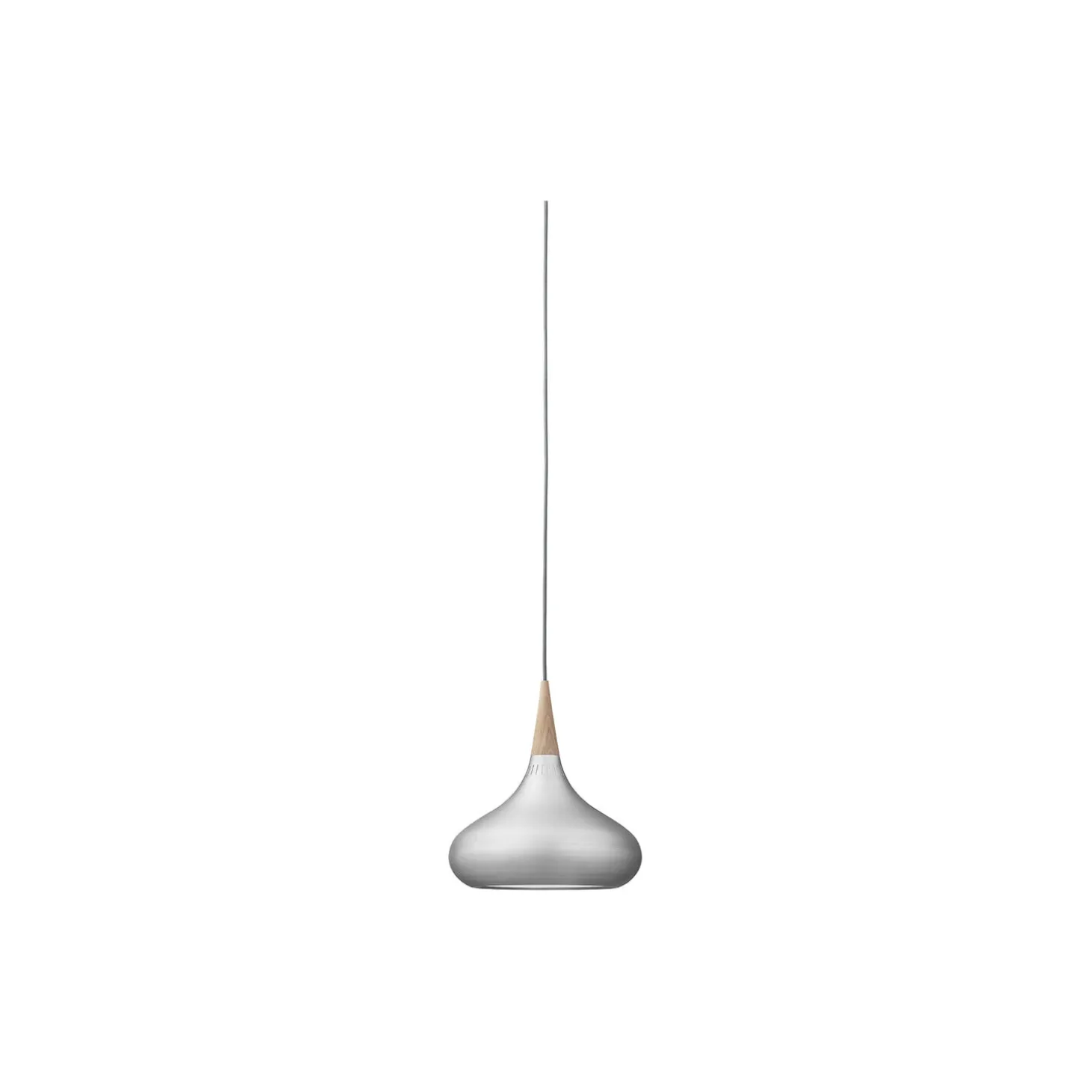 Orient™ P2 pendel i børstet aluminium og eg fra Fritz Hansen. Farve: aluminium/eg. Mål: H: 37 x Ø 34 cm. Lyskilde: maks. 75W E27. Design: Jo Hammerborg.