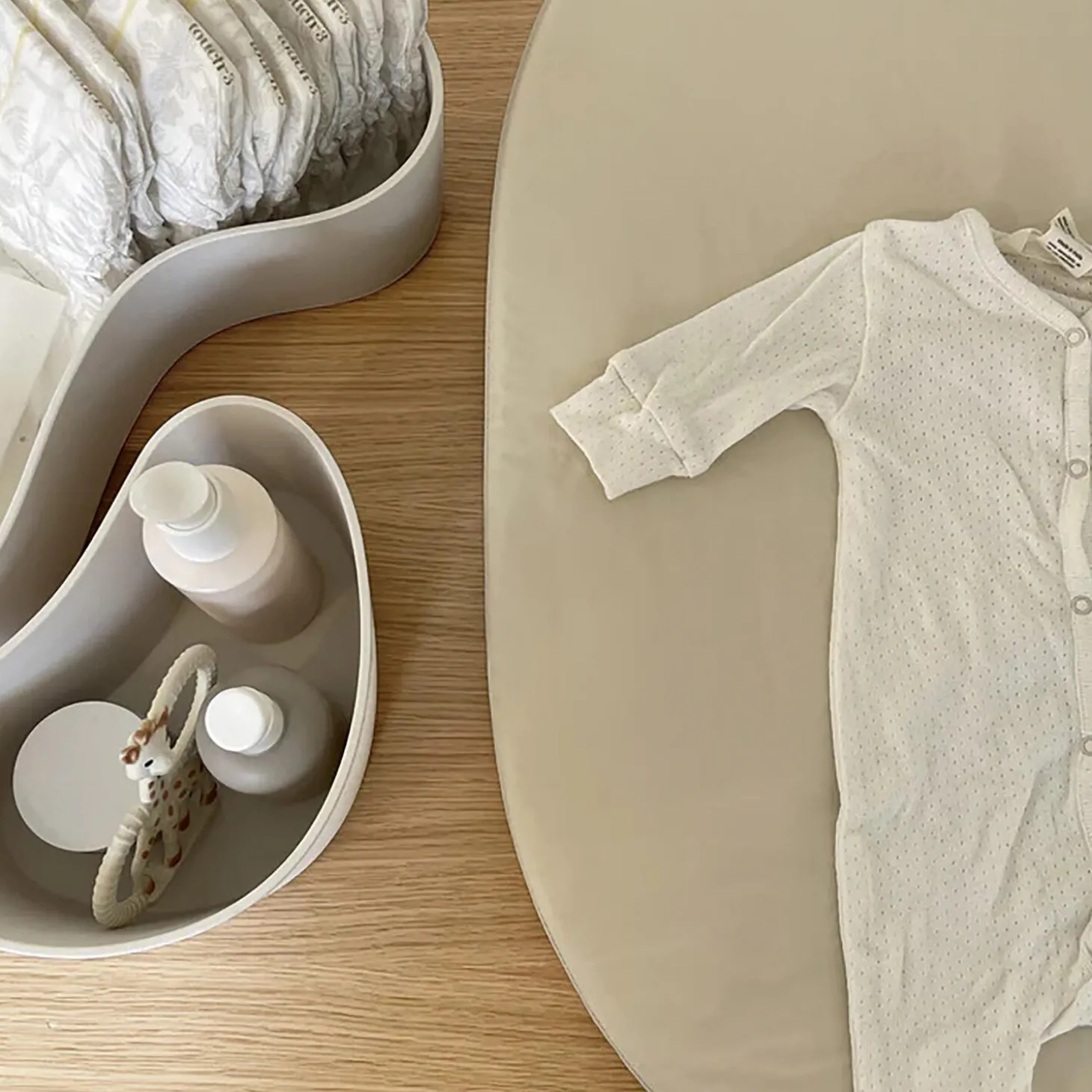 Denne ovale puslepude fra We Are Bitte har en organisk og blød form med høje kanter. Den er lavet af PU skum og har et aftageligt vaskbart betræk. Betrækket er lavet af økologisk bomuld og er coatet så det kan modstå vand og snavs.Med den ovale form og de bløde kanter, giver denne puslepude et organisk og blødt udtryk samtidig med, at barnet ligger på et blødt underlag af skum. Med andre ord får du både sikkerhed, komfort og æstetik i ét.