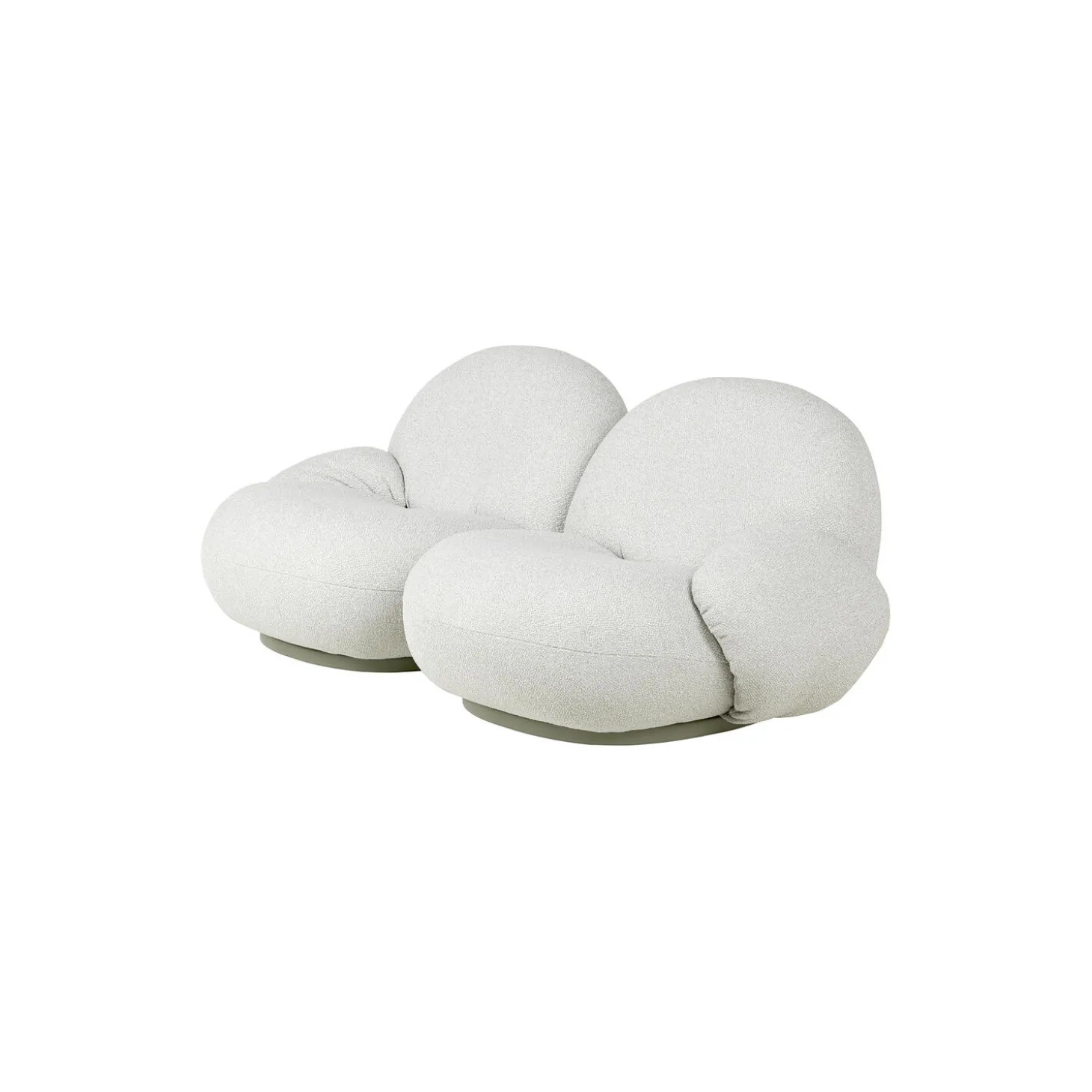 Pacha Outdoor 2-seater Sofa with Armrests fuldpolstret i Libera 003 tekstil af Dedar med mellemfor i vandafvisende tekstil og base i lakeret rustfrit stål fra GUBI. Farve: Libera 003. Mål: H: 65 x B: 176 x D: 85 cm. Siddehøjde: 37 cm. Design: Pierre Paulin.