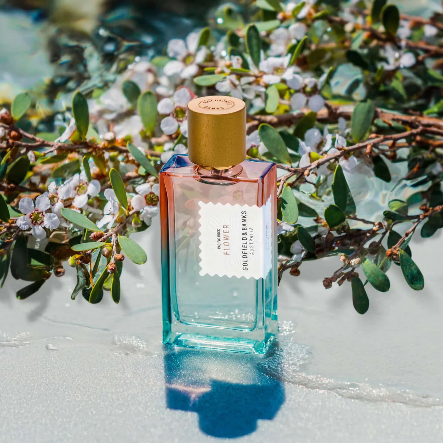 Lad dig forføre af duften af vilde botaniske ingredienser blandet med den salte havbrise og delikate blomsternoter, der er kysset af havets bølger.Pacific Rock Flower er en sprudlende parfume, der indfanger skønheden i et oceanisk paradis, hvor solens varme fremhæver den rige aroma af indfødte hvide kystblomster indhyllet i cremede og salte noter fra et solbeskinnet hav. Denne duft indkapsler den rolige skønhed og æteriske ynde af blomster, der blidt skylles ind under vilde havbølger. Pacific Rock Flower tager dig med på en rejse gennem indfødte kystblomster og indkapsler den livlige ånd i Australiens kystliv.Pacific Rock Flower bruger på unik vis australsk Coastal Tea Tree, en indfødt plante, der er dækket af hvide blomster i foråret og sommeren og vokser vildt på klipperne og klitterne langs Australiens lange østkyst. Næret af havtåge og solskin trives den i vilde områder, der strækker sig fra det kosmopolitiske Sydney til hedelandskabet i Tasmanien. Koncentration: 25 % essenser og botaniske ingredienserBotaniske ingredienser og essenser:CitronEukalyptusAustralsk Coastal Tea TreeHavsaltKokosvoksKoralblomst AustralienKystmosCedertræPatchouliSandeltræ Australien Duftfamilie: Floral – WoodyDuftbeskrivelse: Cremet – FriskParfumør: Emilie Bouge Goldfield & Banks’ grundlægger Dimitri Weber skabte Pacific Rock Flower sammen med den berømte franske parfumør Emilie Bouge hos Robertet, det prestigefyldte parfumehus i Grasse. Den æteriske olie fra Coastal Tea-Tree’s indeholder opkvikkende tea tree og kølende eukalyptus. Jordnær sødme og let citrus, afrundet med et strejf af havsalt og blødgjort af delikate cremede blomsternoter som koralblomst, tuberose og cremet kokosvoks. Når parfumen tørrer, afslører den varme dybder af patchouli og langvarig australsk sandeltræ.