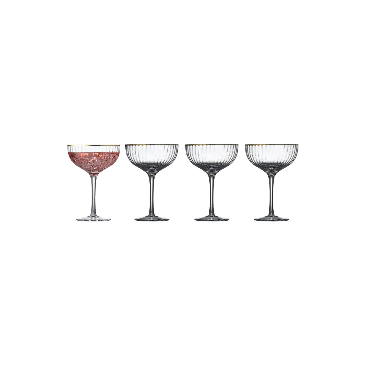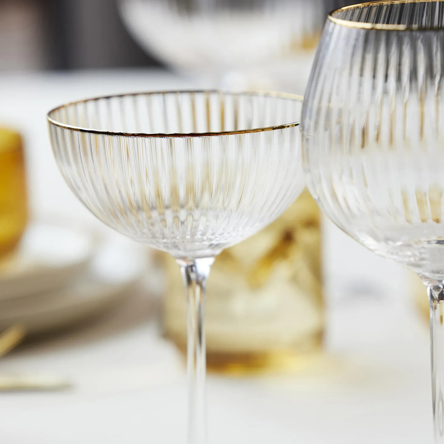 Smukt cocktailglas med bløde, rundede former. Det elegante, riflede design med en fin guldkant giver glasset et flot vintagelook, der samtidig afspejler tidens trends. Server festlige cocktails, drinks eller desserter i glasset og lad de fine facetter reflektere lyset og glassets indhold på smukkeste vis.