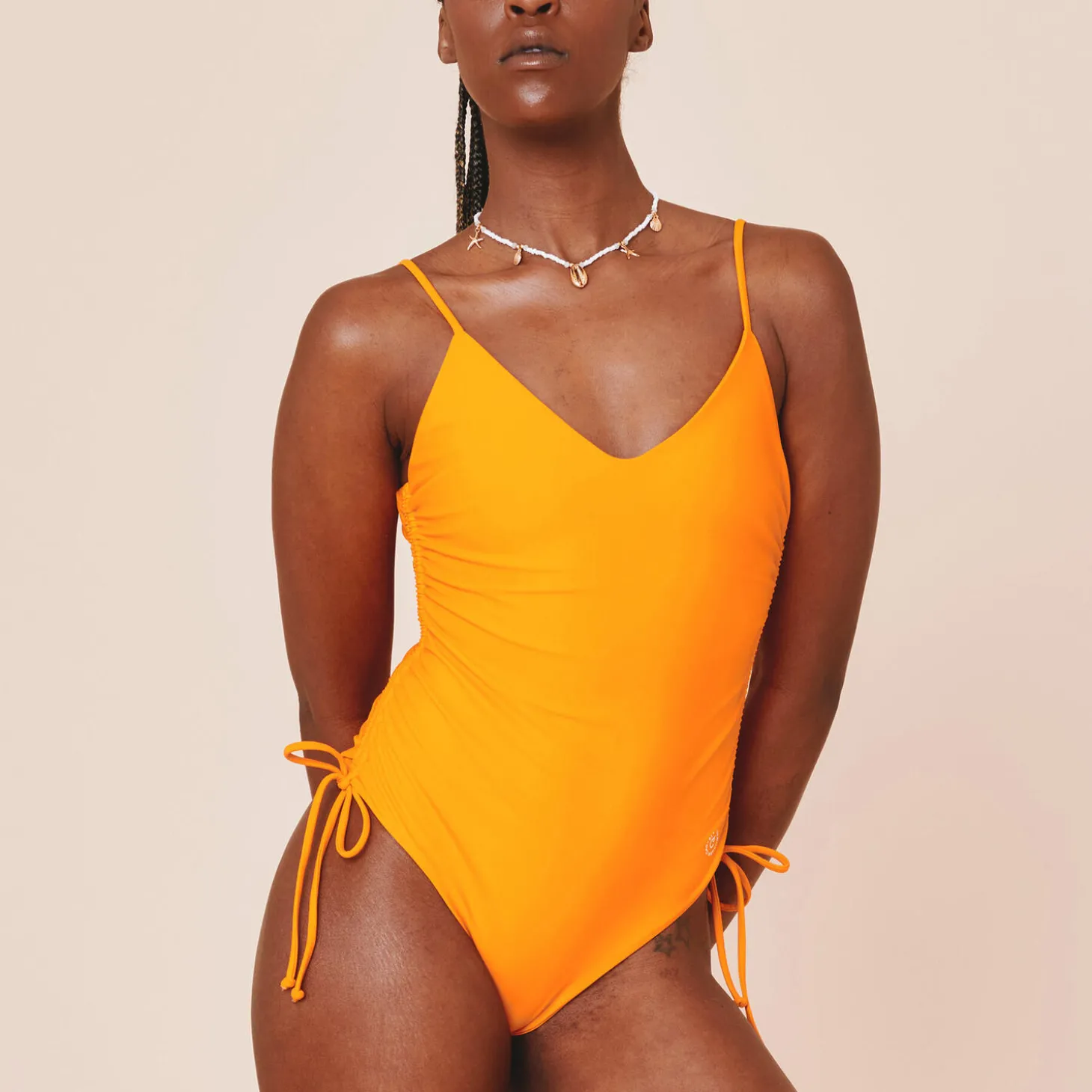 Pantai justerbar badedragt er den mest multifunktionelle badedragt. Der er justerbare sider som giver dig muligheden for at tilpasse, hvor meget dækning du ønsker bagtil, og hvor højt den skærer ved hofterne. Med en flatterende bred V-udskæring foran og en dyb ryg, er Pantai den perfekte beach-buddy. Det multifunktionelle design gør, at Pantai kan tilpasses efter dine omgivelser, humør og stil. Pantai er syet med 2-lags stof af høj kvalitet, som føles fantastisk, er åndbart mod huden og samtidig støtter alle de rigtige steder. Produktet er skabt af ECONYL® regenereret nylon blandet med elastan.