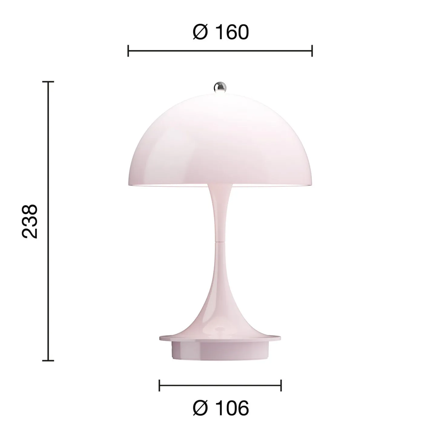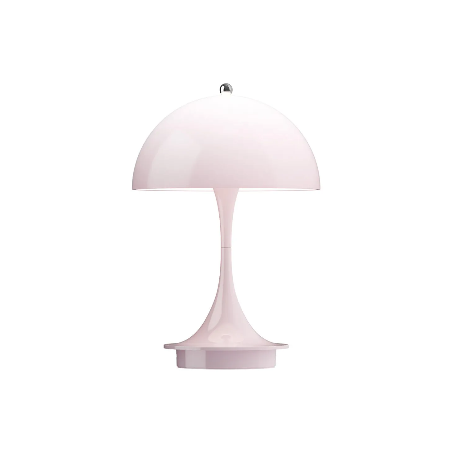 Denne bærbare bordlampe udsender et blændfrit, blødt og behageligt lys. Versionerne med metalskærm retter lyset direkte nedad og skaber en behagelig belysning takket være den indvendige hvidmalede skærm og refleksionen fra den trompetformede fod. Versionerne med akrylskærm giver en blid belysning og en diskret stemning takket være gennemsigtigheden og refleksionen af det nedadrettede lys på indersiden af skærmen.