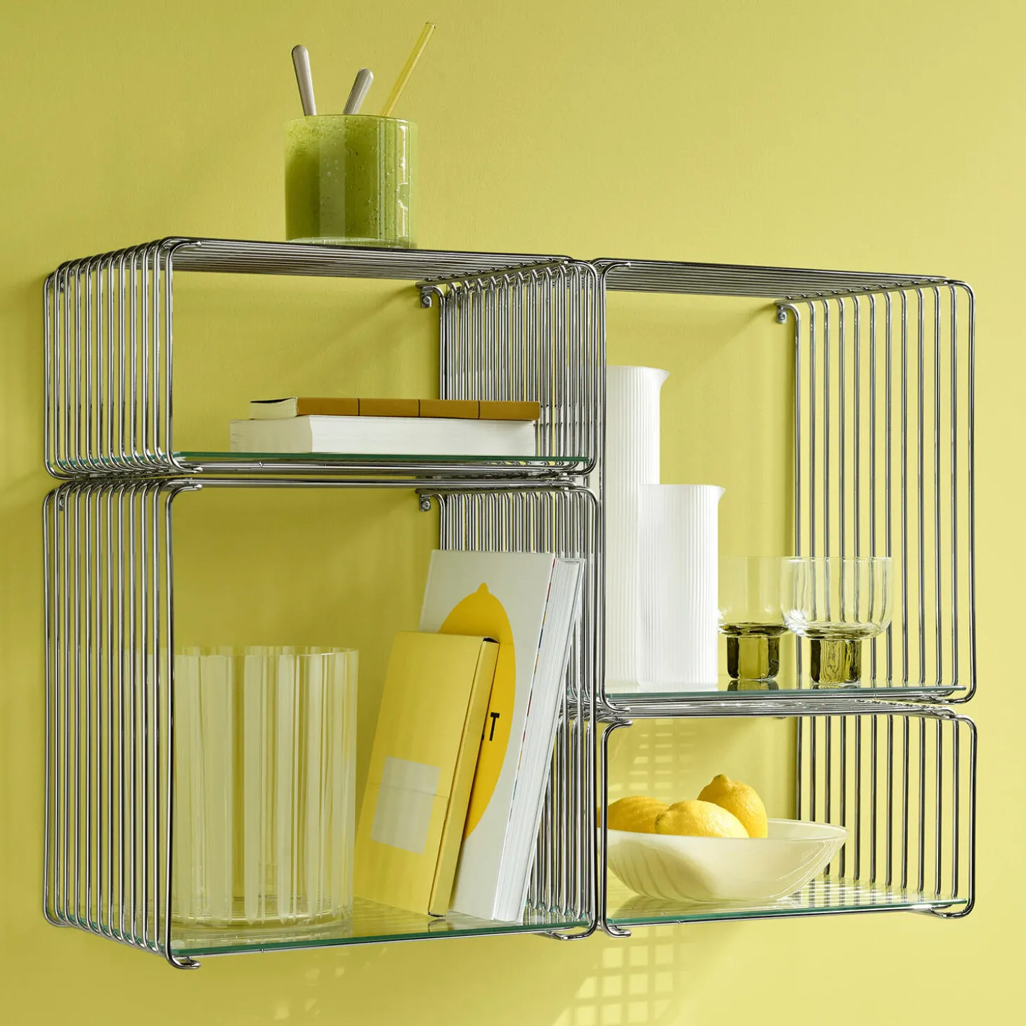 Verner Pantons trådreol, Panton Wire Single, er på en og samme tid rå og industriel, let og elegant. Panton Wire Single kan bruges enkeltvis, sammen og kombineret med de andre produkter fra Panton Wire serien – på gulv, væg eller som rumdeler. En opstilling af flere Panton Wire trådreoler er for eksempel en ideel løsning som en rumdeler i en foyer, som både tilfører rummet stil og praktisk opbevaring.
