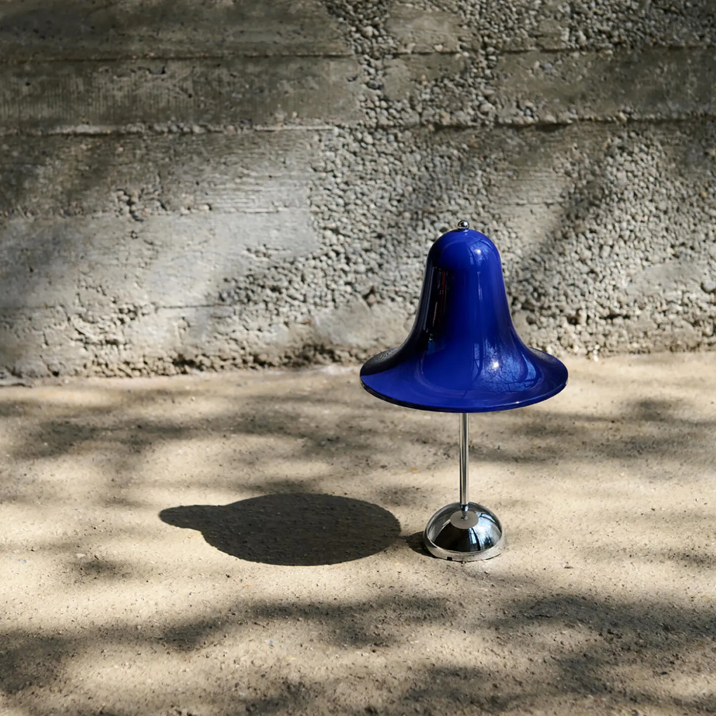 Den elegante Pantop-serie blev designet af Verner Panton i 1980 og har i lang tid været en fast bestanddel af Verpan-kollektionen. Pantop er kendetegnet ved en klokkelignende, bredt udspilet skærm, som er monteret med åbningen nedad. Pantop Ø18 Portable Lamp fås i en række forskellige farver – Cream White, Vivid Orange, Cherry Red, Pitch Brown, Night Blue, Dark Teal, Light Teal og Chrome.