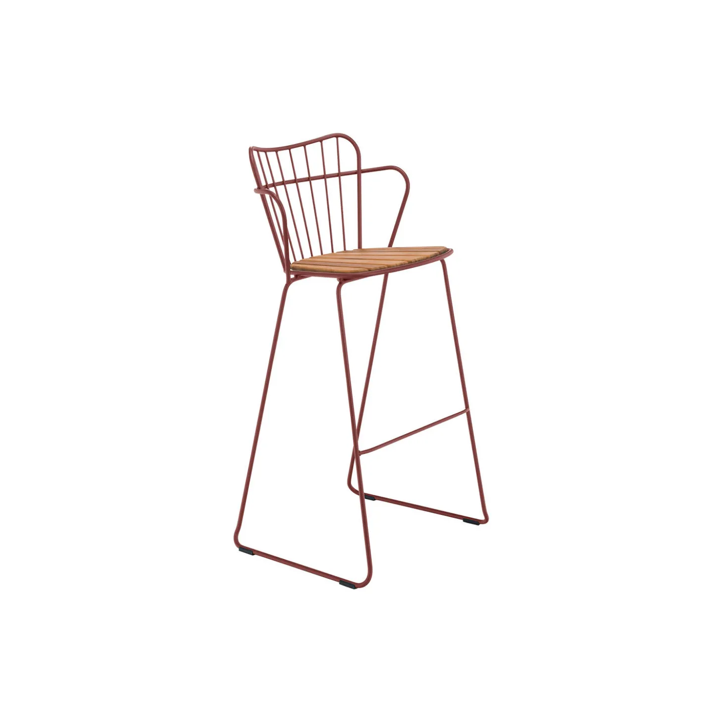 PAON barstol i bambus og pulverlakeret stål fra HOUE. Farve: paprika. Mål: H: 107 x B: 59 x D: 54 cm. Siddehøjde: 78 cm. Design: Henrik Pedersen.