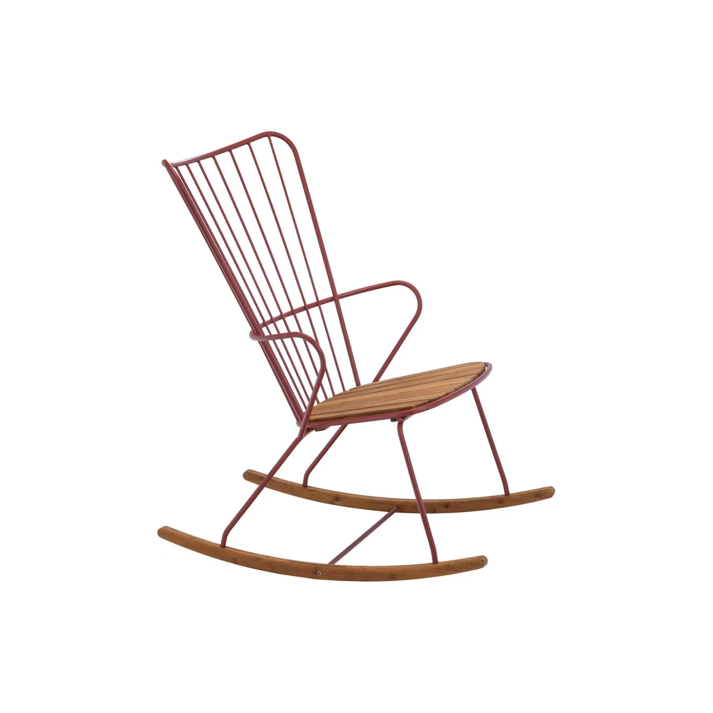 PAON gyngestol i bambus og pulverlakeret stål fra HOUE. Farve: paprika. Mål: H: 91 x B: 59 x D: 77 cm. Siddehøjde: 40 cm. Design: Henrik Pedersen.