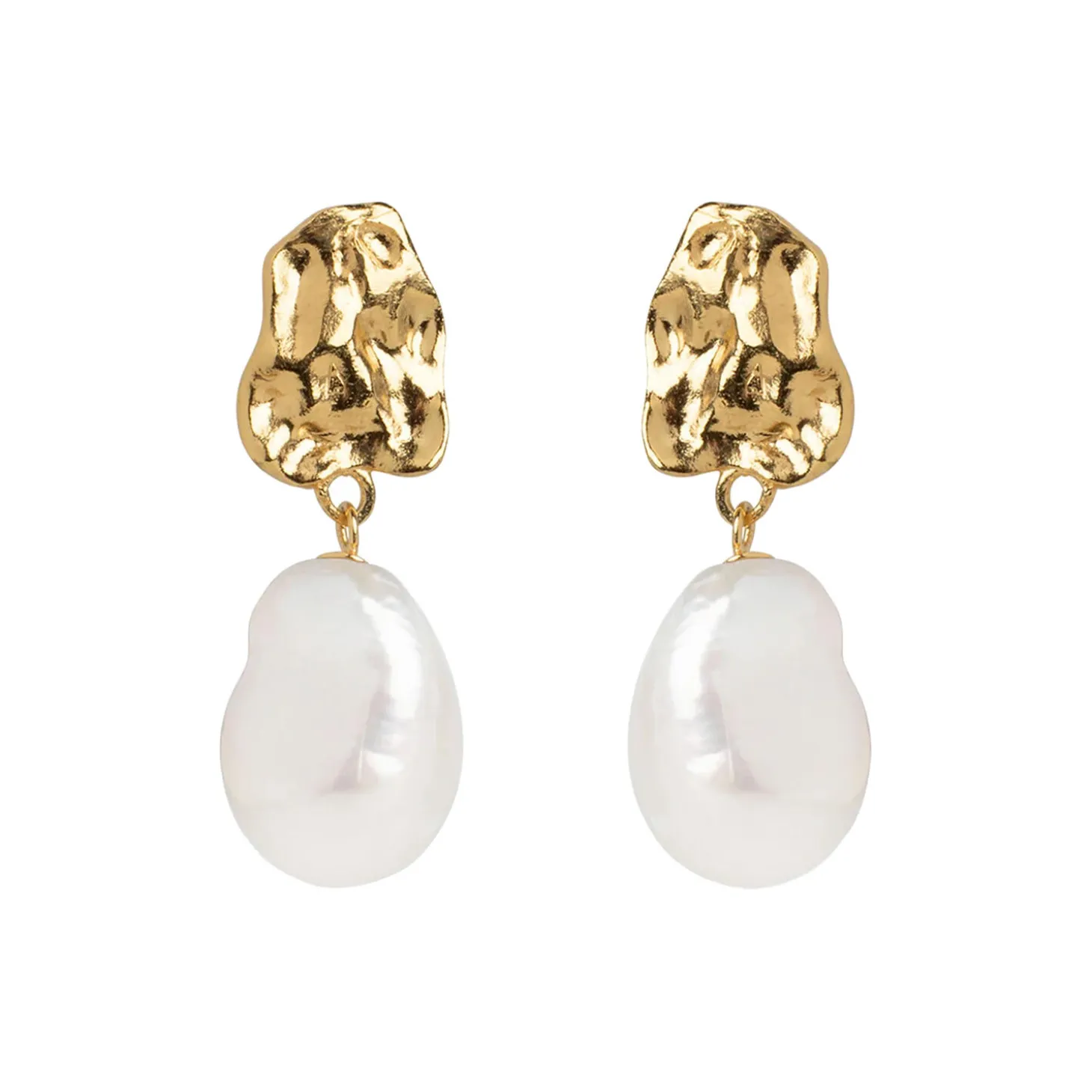 Paris øreringene består af en stor, bølget ørestik og en smuk, barok ferskvandsperle, der skaber et unikt udtryk, når du tager den på. De emmer af overdådighed og originalitet, så hvis du elsker det klassiske perle-look, men ønsker et par øreringe, der har en ekstra portion eksklusivitet, så er Paris øreringene de helt rigtige for dig. Stikken dækker øreflippen ekstra flot, og er lavet af en tynd, forgyldt sølvplade, hvilket gør den behagelig og pæn at have på.