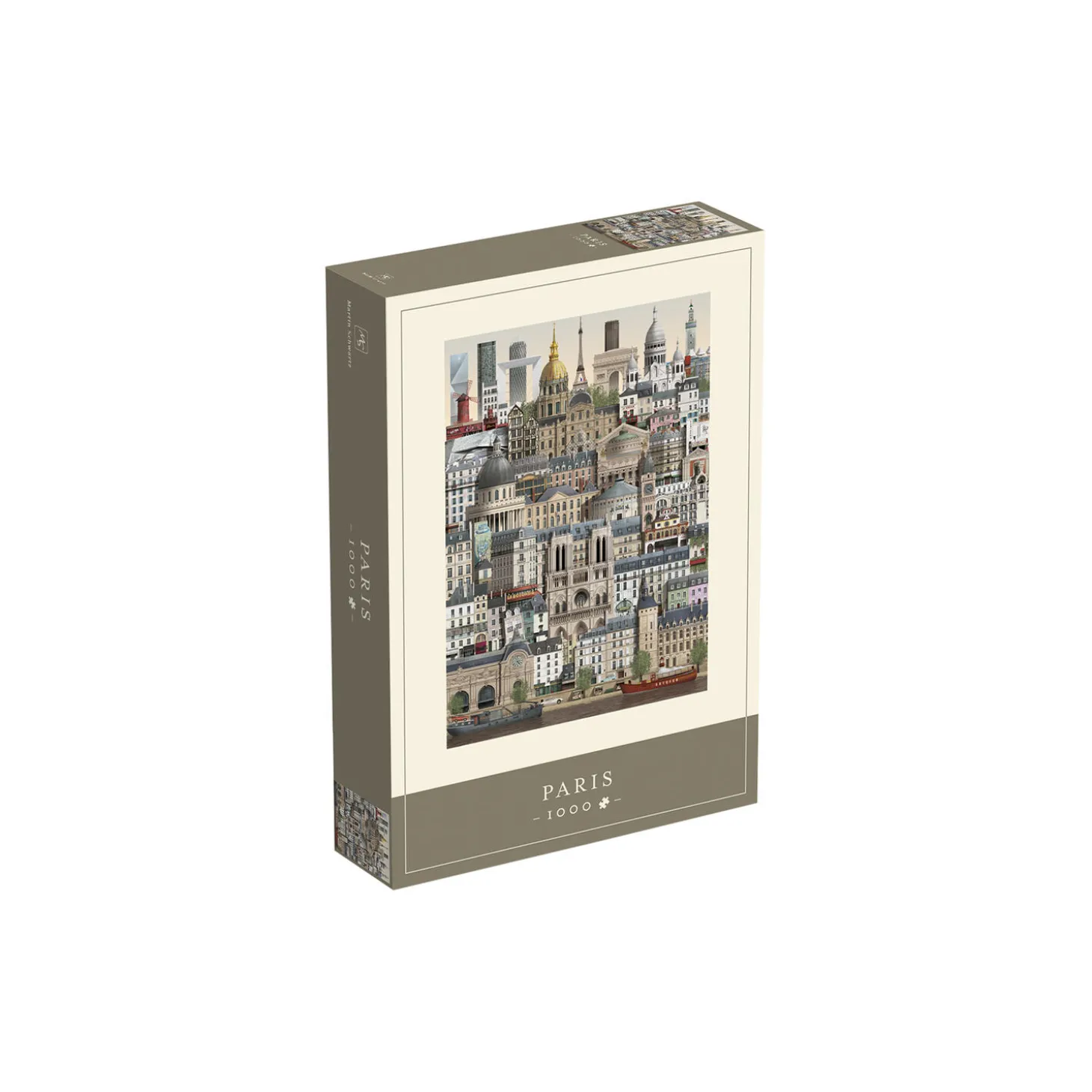 Paris puslespil trykt på pap fra Martin Schwartz. Farve: multifarvet. Mål: 50×70 cm. Antal: 1000 brikker.