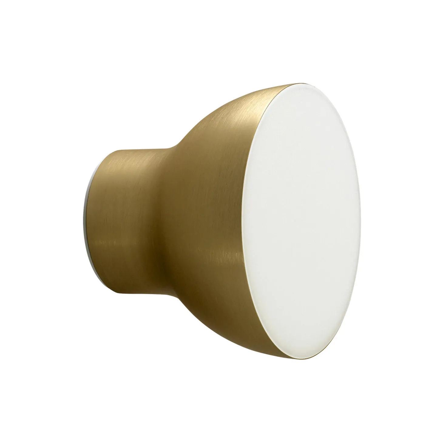 Passepartout JH11 væglampe i lakeret metal og polykarbonat fra &Tradition. Farve: brass. Mål: H: 15,5 x Ø 20 cm. Lyskilde: 11.5W LED. Design: Jaime Hayon.