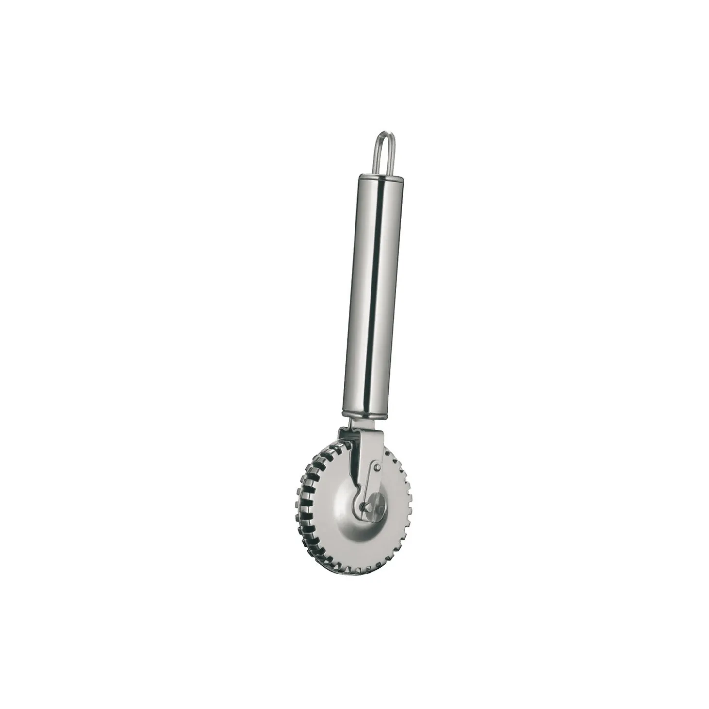 Raviolihjulet fra Küchenprofi bliver det næsten ikke nemmere at lave ravioli og andre fyldte lækkerier. Du ruller to lige store dejstykker ud, lægger fyldet imellem, trykker let på de to plader og derefter kører hjulet igennem i de former du ønsker. Raviolihjulet både forsegler og adskiller dejen. Raviolihjulet er lavet i rustfrit stål og tåler at komme i opvaskemaskinen.