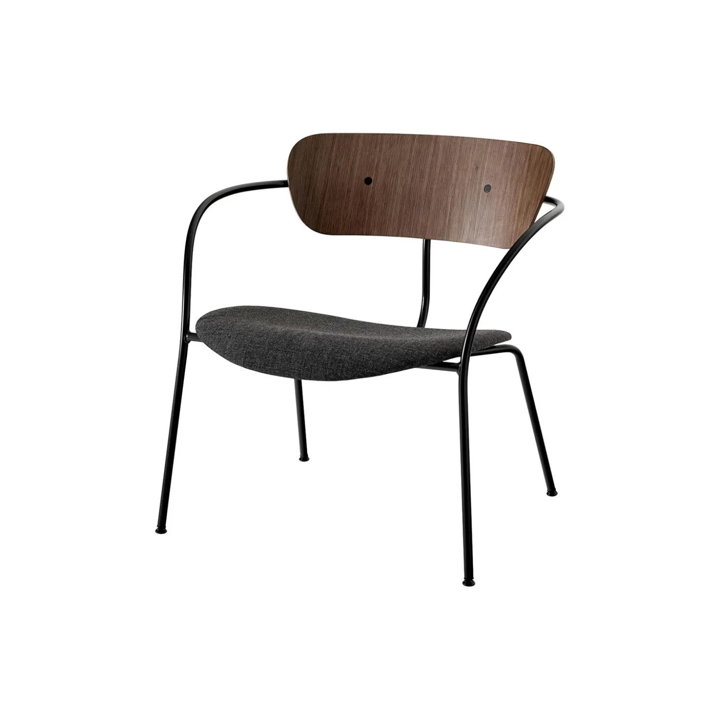 Pavilion AV6 loungestol med stel i pulverlakeret stål, ryglæn i valnød og polstring i Canvas 174 af Kvadrat fra &Tradition. Farve: valnød/grå. Mål: H: 70 x B: 69 x D: 65 cm. Siddehøjde: 38 cm. Design: Anderssen & Voll.