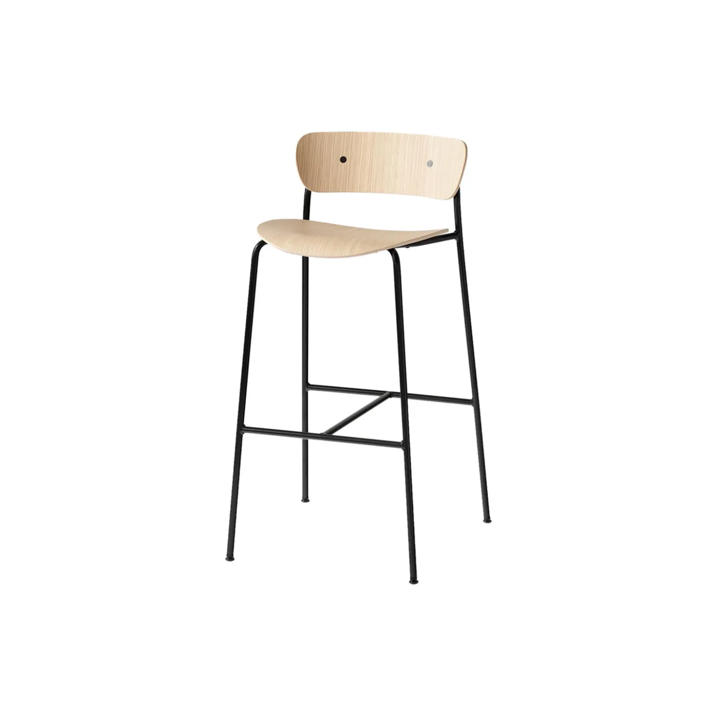 Pavilion AV7 barstol i lakeret eg med stel i pulverlakeret stål fra &Tradition. Farve: eg/sort. Mål: H: 85 x B: 50 x D: 48 cm. Siddehøjde: 65 cm. Design: Anderssen & Voll.