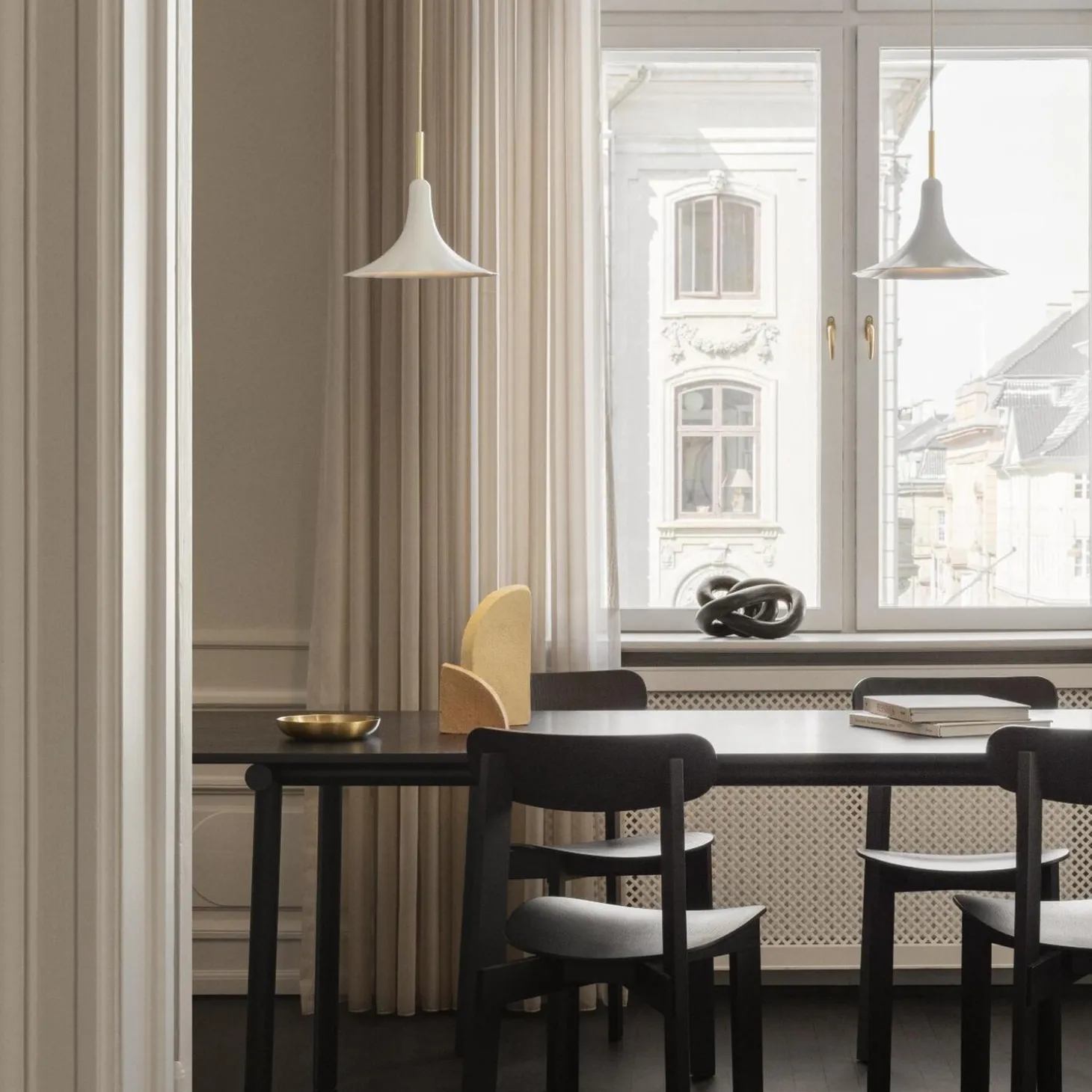 Nika Zupanc har skabt Petalii 1 Small pendlen for Nuura. Lampen har et poetisk udtryk, og en hvid, enkel blomst præsenterer sig i denne fortælling. Skærmen er formet som en blomst i flor, og er udført i hvidt metal med detaljer i poleret messing metalfinish. Lyskilden er placeret i hjertet af lampen, hvorfra et blødt lys spreder sig i skærmen. Petalii 1 Small er ideel som en enkelt pendel over et rundt bord eller installeret i en serie af flere lamper over et langt bord.