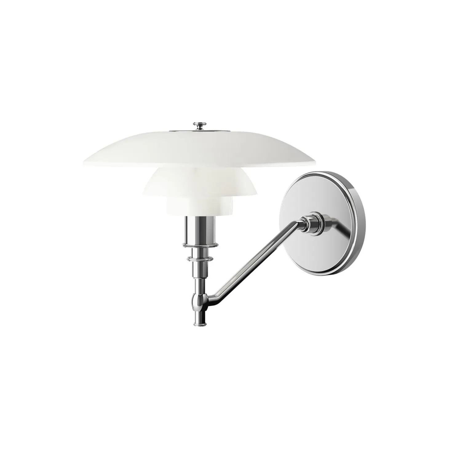 Væglampen giver en blød, harmonisk og behagelig lysfordeling med sit mundblæste hvide opalglas i tre lag, der primært leder lyset nedad. Poul Henningsen designede lampen ud fra sit berømte treskærmssystem, som han skabte i 1925 for at skabe fremragende blændfri belysning. Den første lampe med flerskærmssystemet blev lavet i samarbejde med Louis Poulsen til Paris udstillingen samme år. ‘Paris-lampen’ vandt guld. Henningsen havde en videnskabelig tilgang til lys og fortsatte med at designe armaturer baseret på det samme system. Han brugte den logaritmiske spiral som fundament og opnåede en meget ensartet fordeling af lyset med treskærmssystemet, som sammen med en spredt refleksion gennem glasset gjorde det muligt at styre både blænding og skygge. Hvert PH-lampenummer refererer til størrelsen på lampens skærme. PH 3/2 Væg består af en overskærm på ca. 30 cm og underskærme fra 2/2-versionen