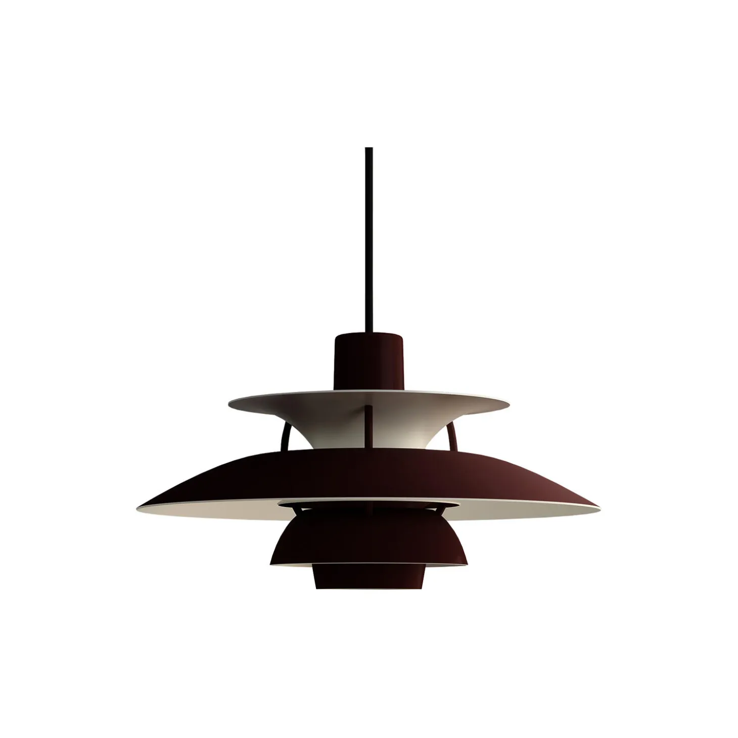 Pendlen udsender et blændfrit nedadrettet lys, samtidig med at den oplyser sit eget stel og dermed skaber en blød og behagelig udstråling af lys inde fra midten af pendlen. Poul Henningsen designede PH 5 i 1958 som en modreaktion på pæreproducenternes evindelige ændringer af formen og størrelsen på glødepærerne på det tidspunkt, som efter Poul Henningsens mening var fuldstændig meningsløse. PH 5 passede til alle typer lyskilder med sit behagelige lys. Det gjorde PH 5 så berømt, at den senere blev synonym med ‘PH-lyset’, som den dag i dag stadig løfter selv det mest moderne interiør – og det samme gør PH 5 Mini. Den mindre version af PH 5, som blev introduceret i 2017, er skabt i overensstemmelse med Poul Henningsens oprindelige design med en overskærm på ca. 30 cm i diameter. Henningsen havde en videnskabelig tilgang til lys og fortsatte med at designe armaturer baseret på det treskærmssystem, som han opfandt i 1925 for at skabe fremragende blændfrit lys. Han brugte den logaritmiske spiral som fundament og opnåede en meget ensartet fordeling af lyset med treskærmssystemet, som gjorde det muligt at styre både blænding og skygge.