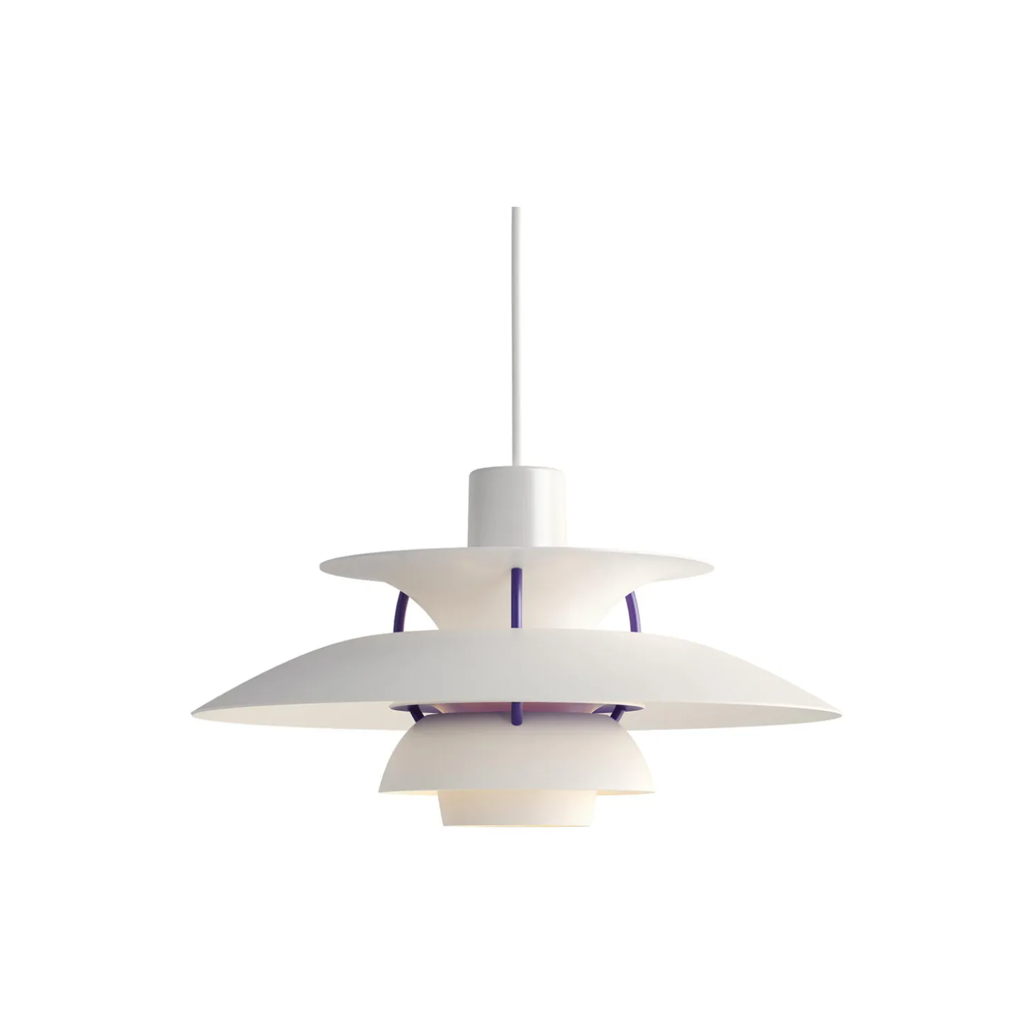 PH 5 Mini pendel i matlakeret aluminium med afblændingsring samt stag i valset aluminium fra Louis Poulsen. Farve: classic hvid. Mål: H: 16,3 x Ø 30 cm. Lyskilde: 20W E14. Design: Poul Henningsen.