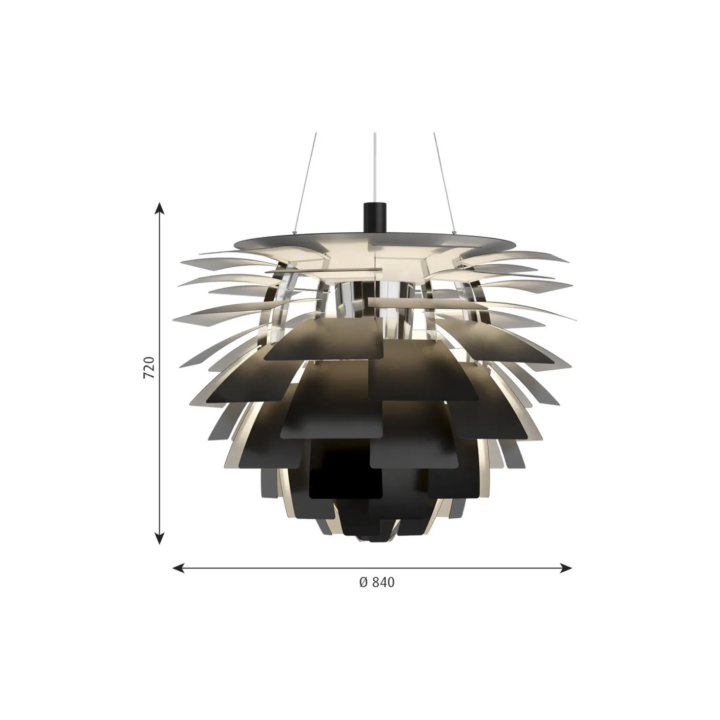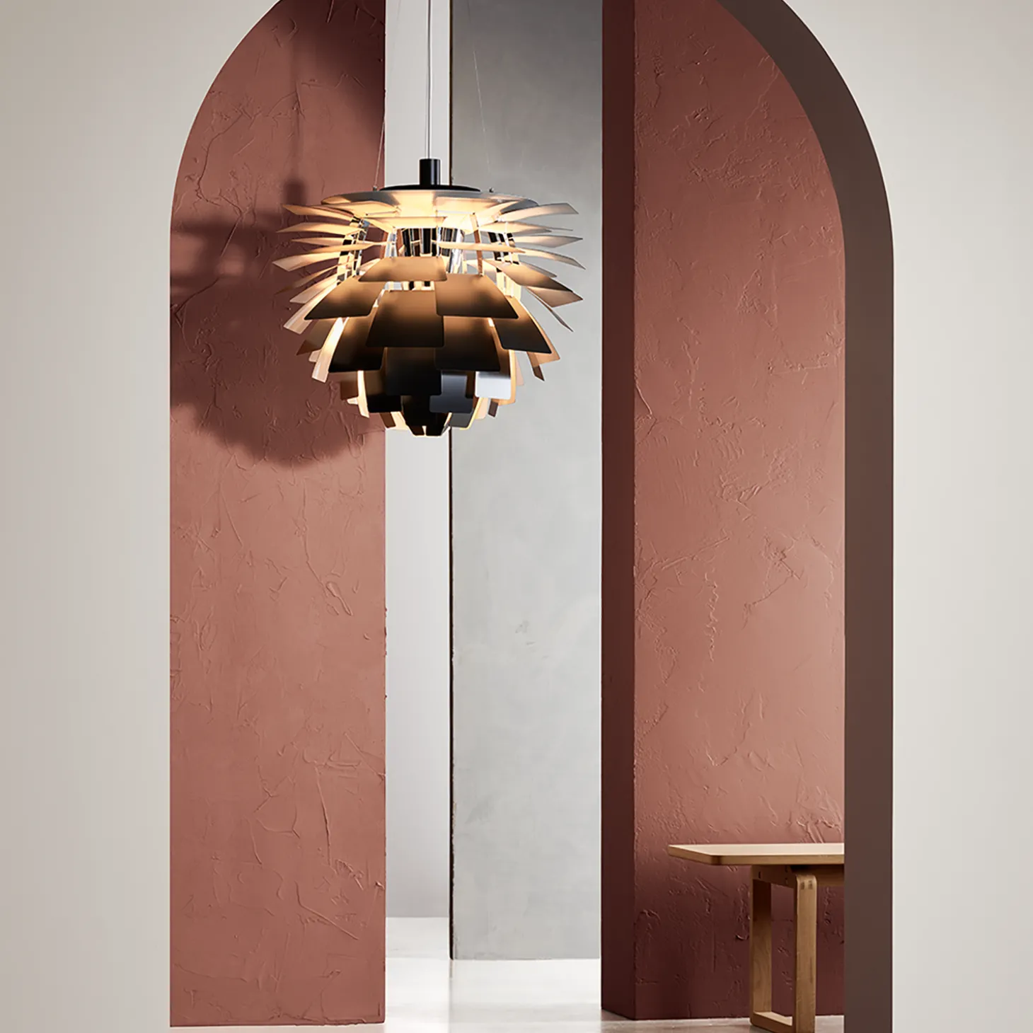 72 metalblade danner 12 præcise rækker med seks blade, som sikrer et blændfrit lys, uanset hvilken vinkel man betragter den spektakulære pendel fra. Navnet refererer til det karakteristiske design, der spreder lyset både indad og udad og på den måde udsender et fantastisk behageligt lys. Da Poul Henningsen blev bedt om at udvikle en pendel til den på det tidspunkt topmoderne københavnske restaurant Langelinie Pavillonen i 1958, tog det ham kun tre måneder at færdiggøre PH Artichoke. Fundamentet blev allerede lagt omkring 1927-31, da han udviklede PH Septima Glass Light med skiftevist klare og matterede glasflader. PH Artichoke var baseret på idéen bag Septima. Den dag i dag kan gæsterne på Langelinie Pavillonen i København stadig nyde PH Artichoke, der nu anses for at være et designikon.