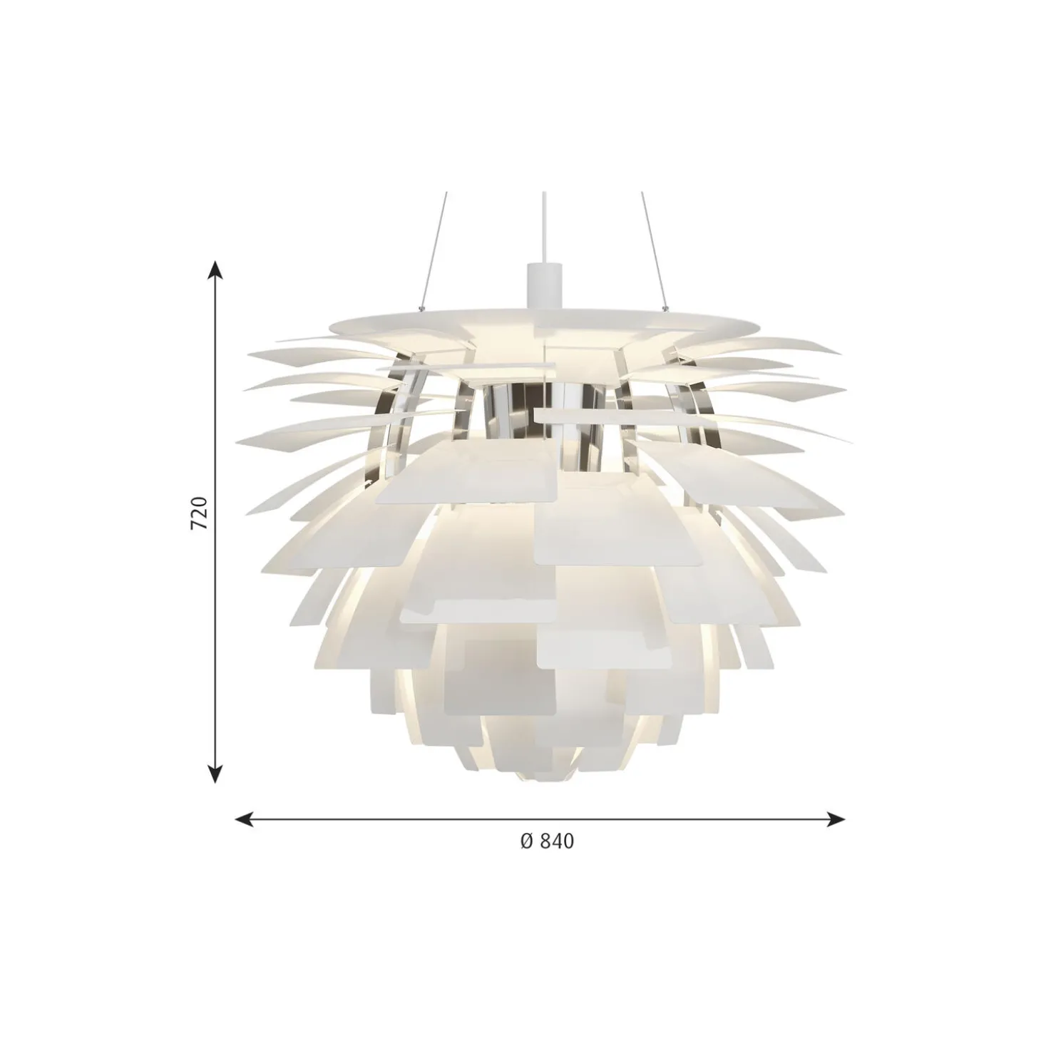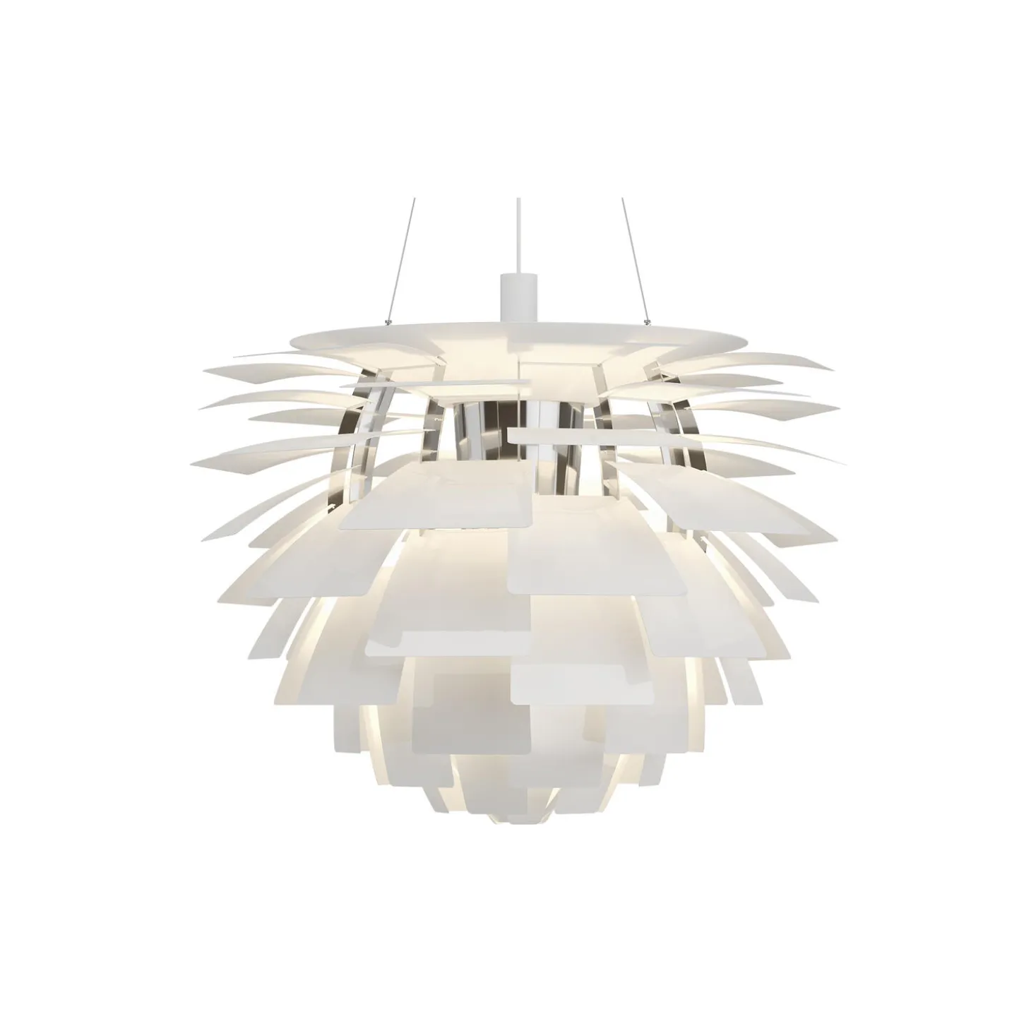 72 metalblade danner 12 præcise rækker med seks blade, som sikrer et blændfrit lys, uanset hvilken vinkel man betragter den spektakulære pendel fra. Navnet refererer til det karakteristiske design, der spreder lyset både indad og udad og på den måde udsender et fantastisk behageligt lys. Da Poul Henningsen blev bedt om at udvikle en pendel til den på det tidspunkt topmoderne københavnske restaurant Langelinie Pavillonen i 1958, tog det ham kun tre måneder at færdiggøre PH Artichoke. Fundamentet blev allerede lagt omkring 1927-31, da han udviklede PH Septima Glass Light med skiftevist klare og matterede glasflader. PH Artichoke var baseret på idéen bag Septima. Den dag i dag kan gæsterne på Langelinie Pavillonen i København stadig nyde PH Artichoke, der nu anses for at være et designikon.