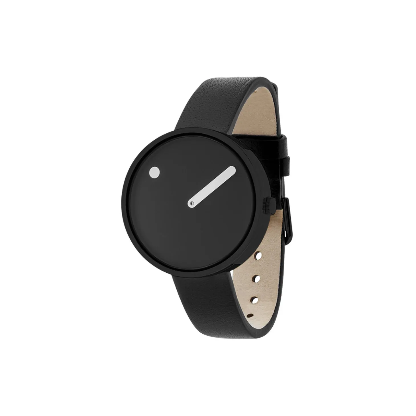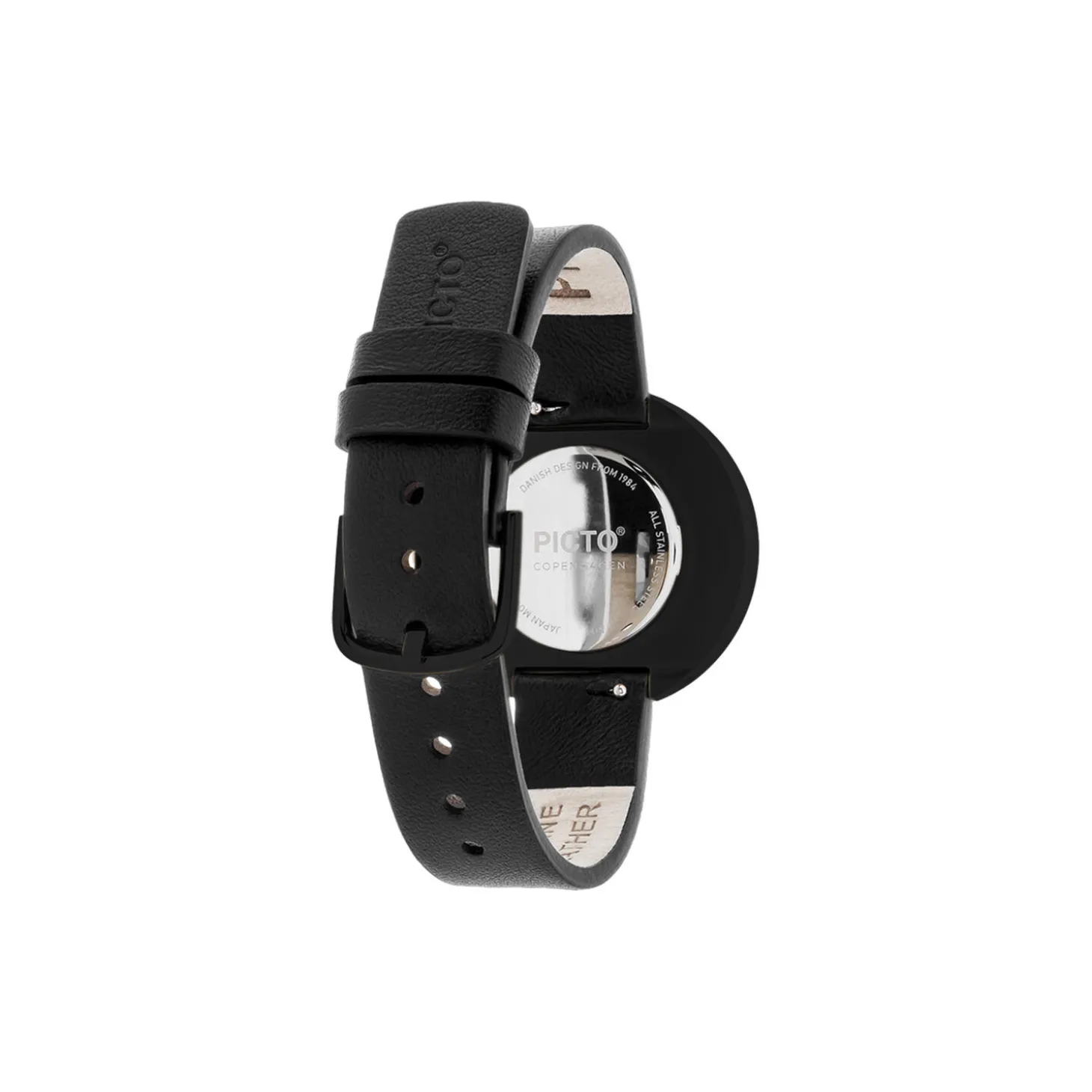 PICTO wrist watch with a rotating dial and black leather strap with polished steel buckle. The dial on this watch is 34 mm.
