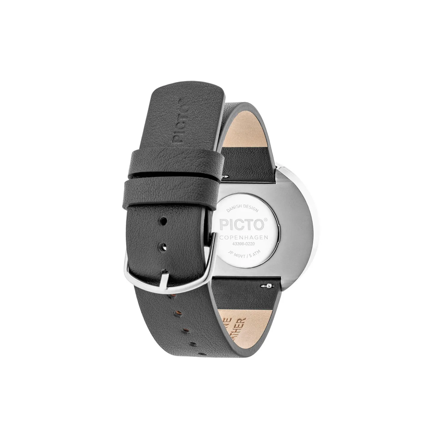 - Materiale: rustfrit stål, læderrem, hærdet mineralglas