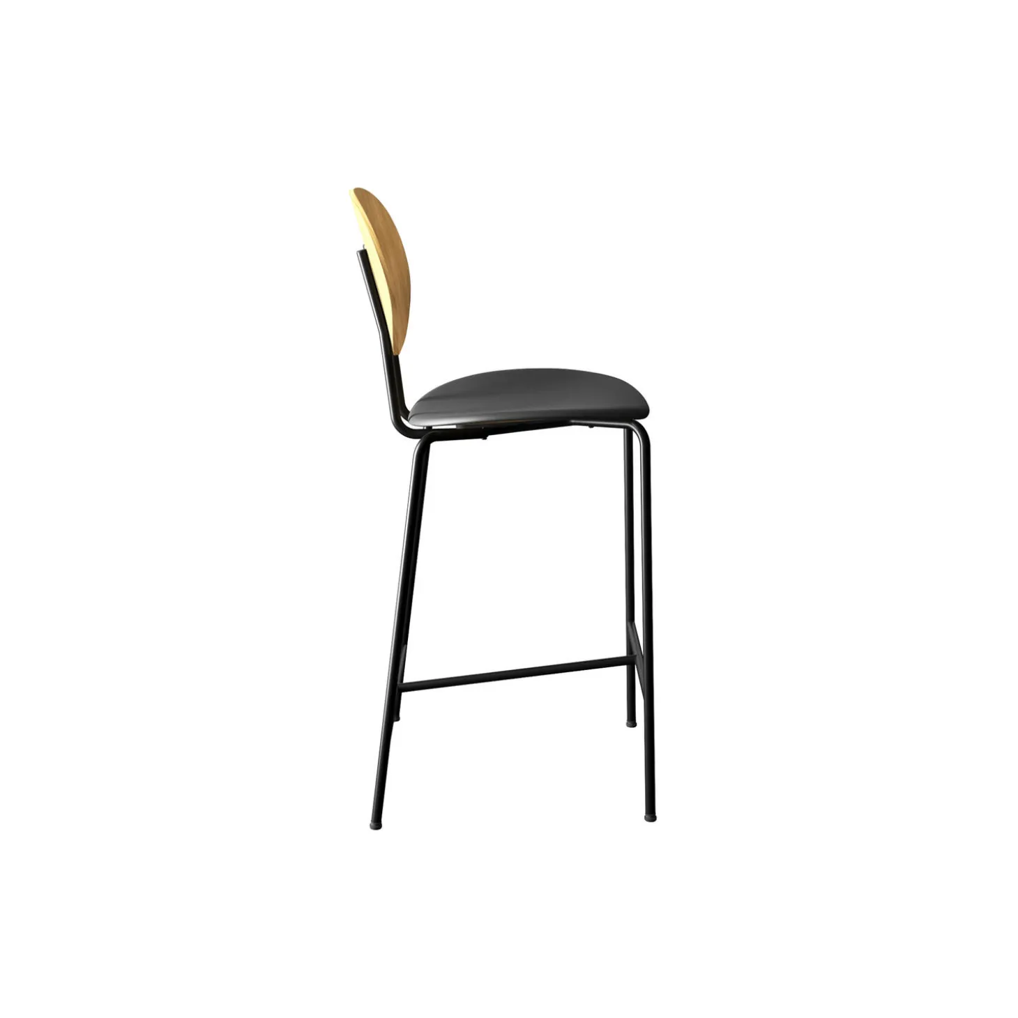 PIET HEIN Counter Chair i olieret egetræsfinér, sæde i Solid Black 509 læder og stel i pulverlakeret stål fra Sibast Furniture. Farve: olieret eg/Solid Black 509. Mål: H: 98 x B: 49 cm. Siddehøjde: 65 cm. Design: Piet Hein.