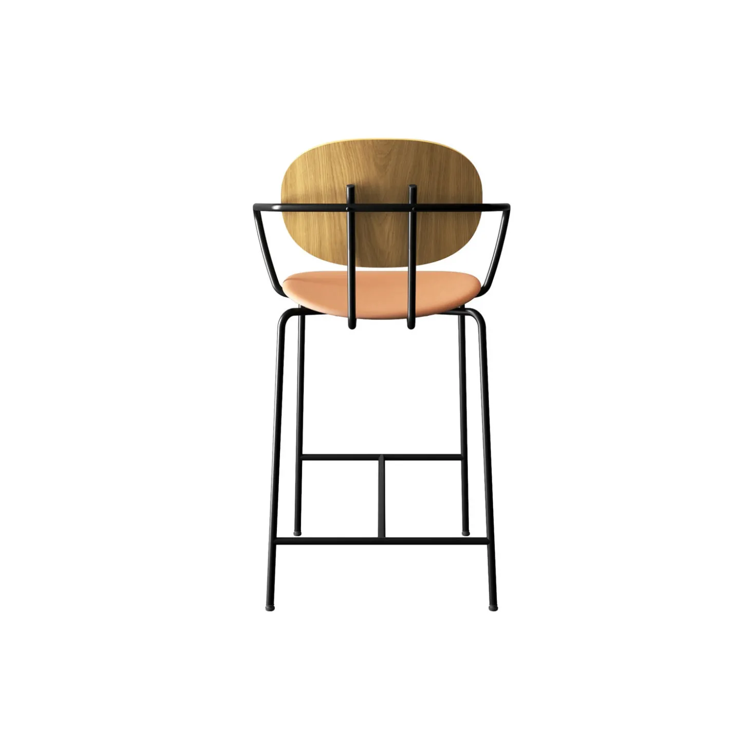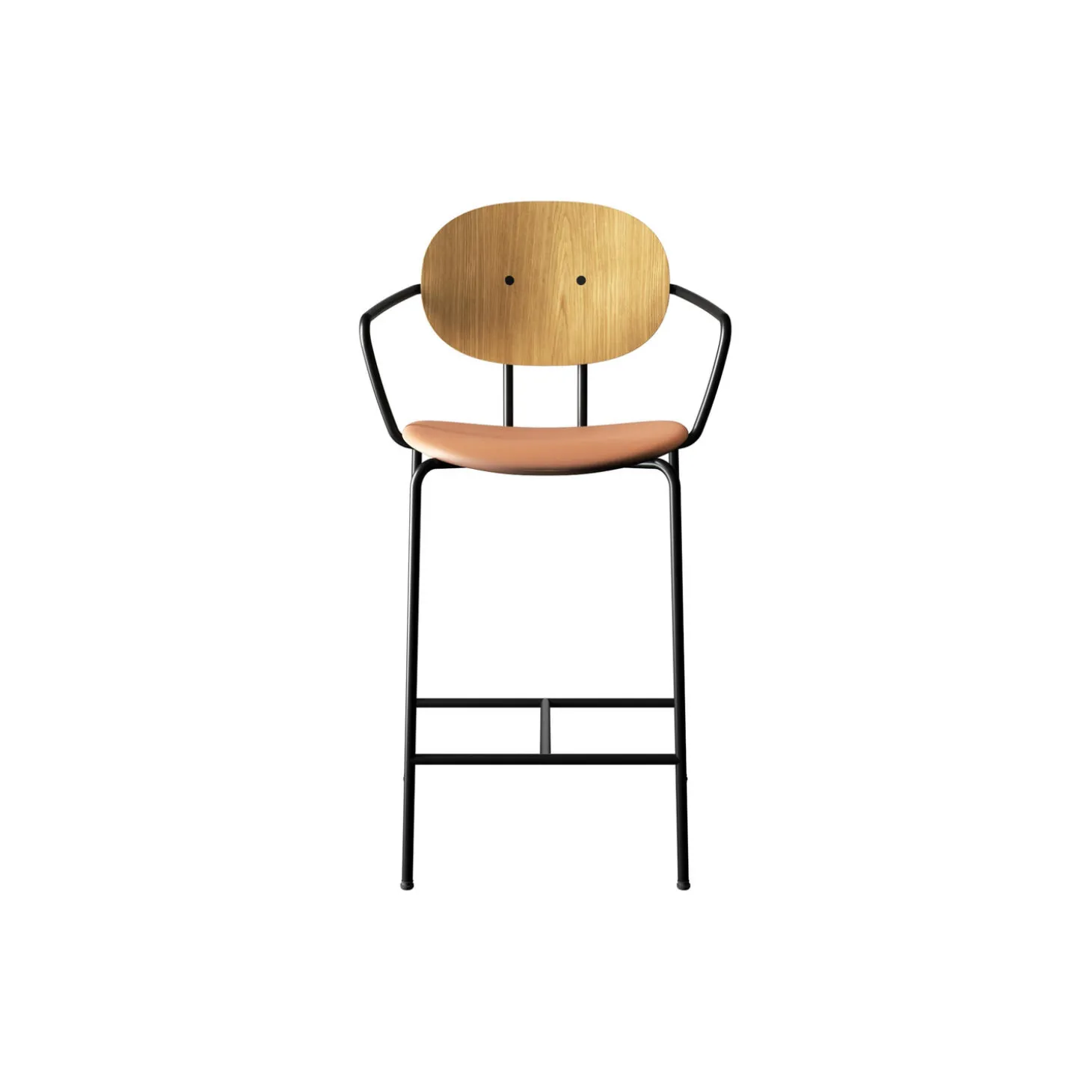 PIET HEIN Counter Chair with Arms i olieret egetræsfinér, sæde i Silk Cognac læder og stel i pulverlakeret stål fra Sibast Furniture. Farve: olieret eg/Silk Cognac. Mål: H: 98 x B: 55 cm. Siddehøjde: 65 cm. Design: Piet Hein.
