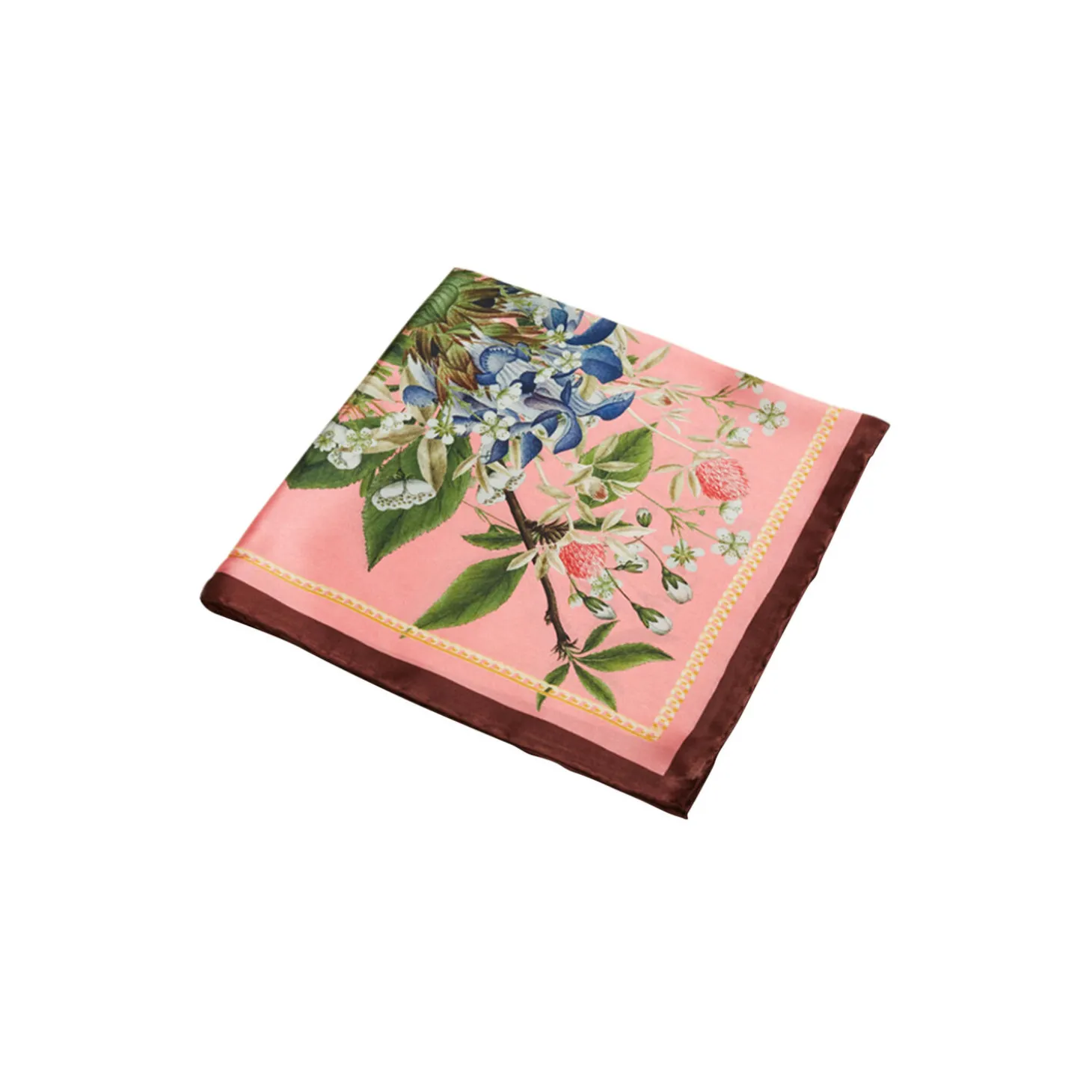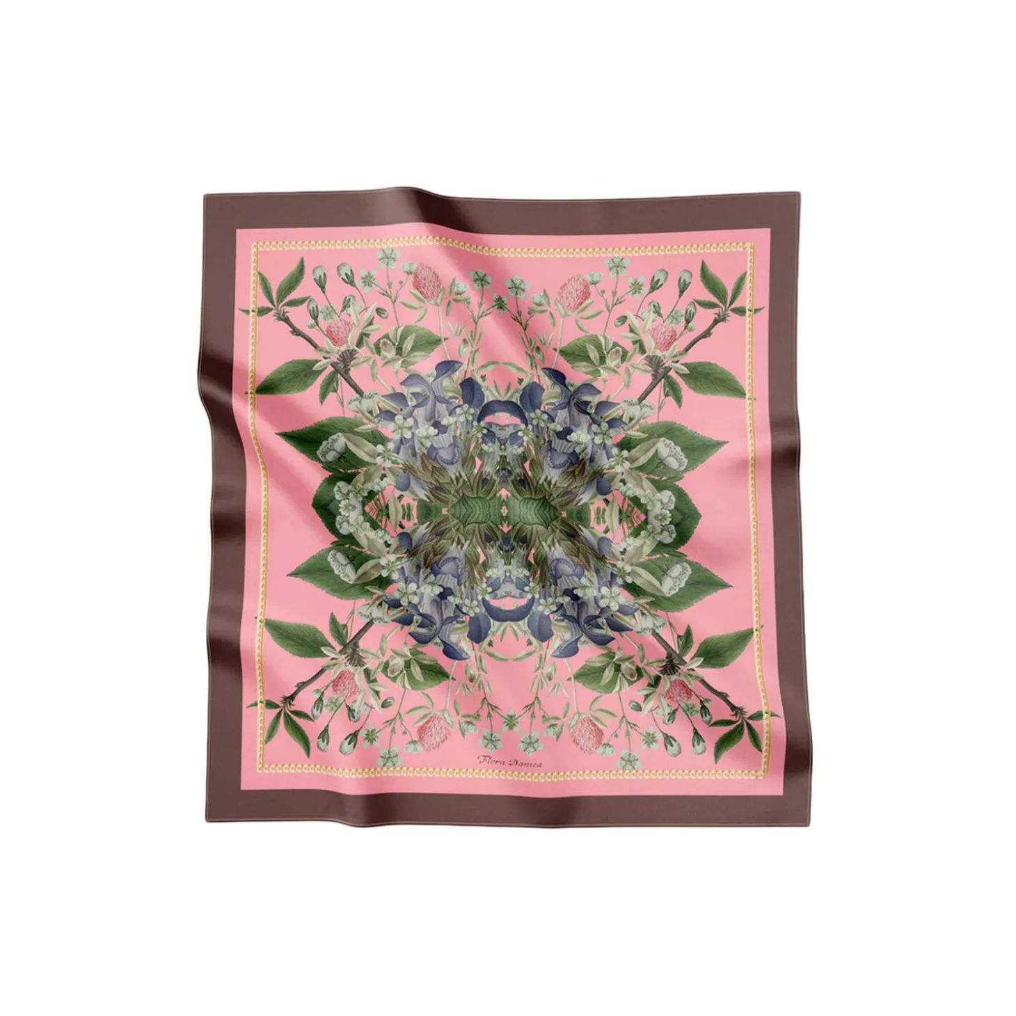 Det smukke silketørklæde Pink Flower er designet i en eksklusiv og feminin rosa-pink farve med et smukt print af udvalgte Flora Danica blomstermotiver. Blomsterne danner et kaleidoscoplignende mønster. Den rosa pink farve giver et feminint udtryk til dit outfit. Tørklædet, er helt kvadratisk og kan derfor både styles om halsen eller bruges som hårbånd. Pink Flower leveres i en smuk æske og er en oplagt gaveidé.