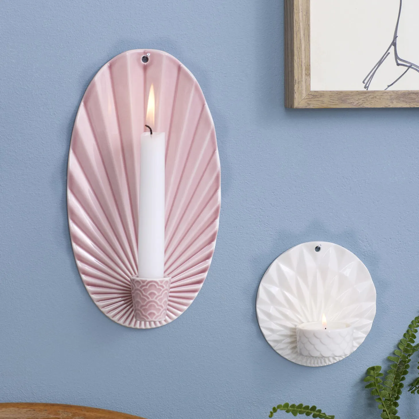 Væghængt lysestage som kaster smukke skygger på væggen, når mørket falder på.