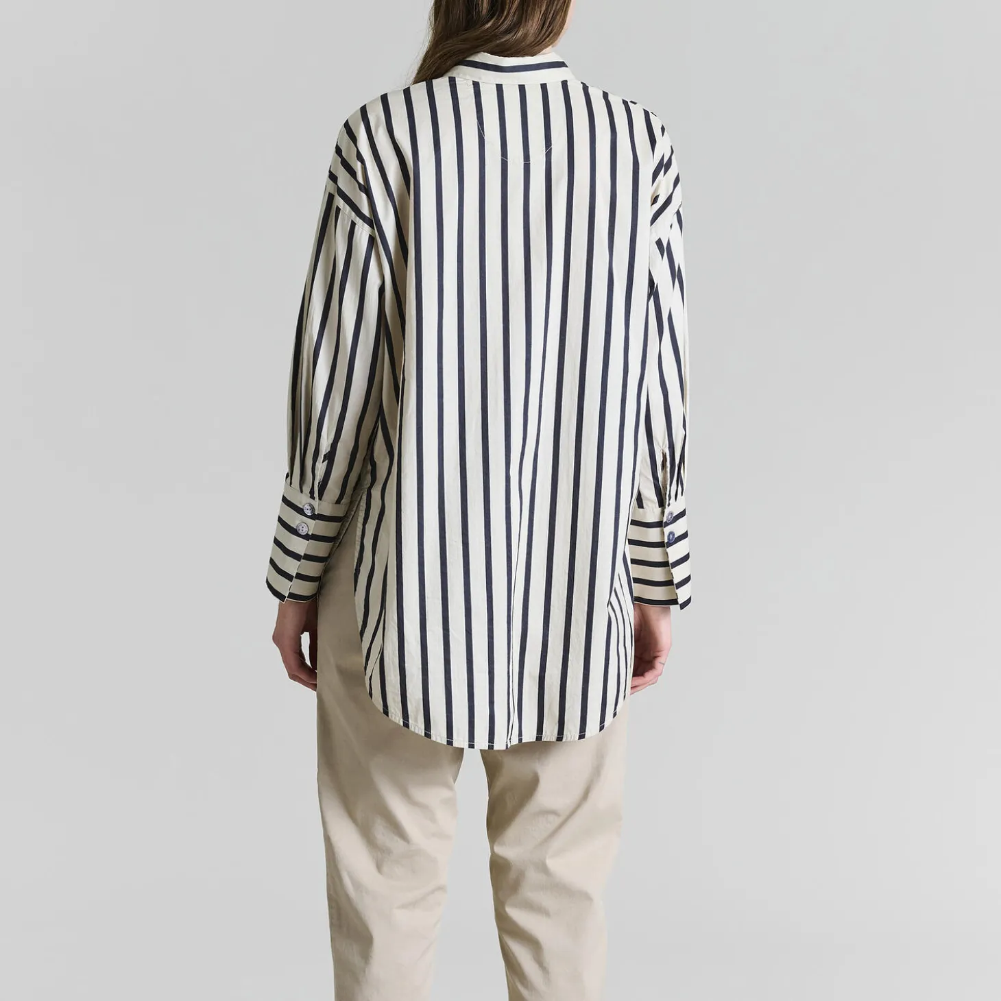Stribet stor skjorte i en lækker, økologisk bomuldskvalitet. Designet er klassisk, og ærmerne er forsynet med meget brede manchetter, hvilket giver skjorten et luksuriøst udtryk. En tidløs og lækker skjorte, der kan kombineres med stort set alle underdele.