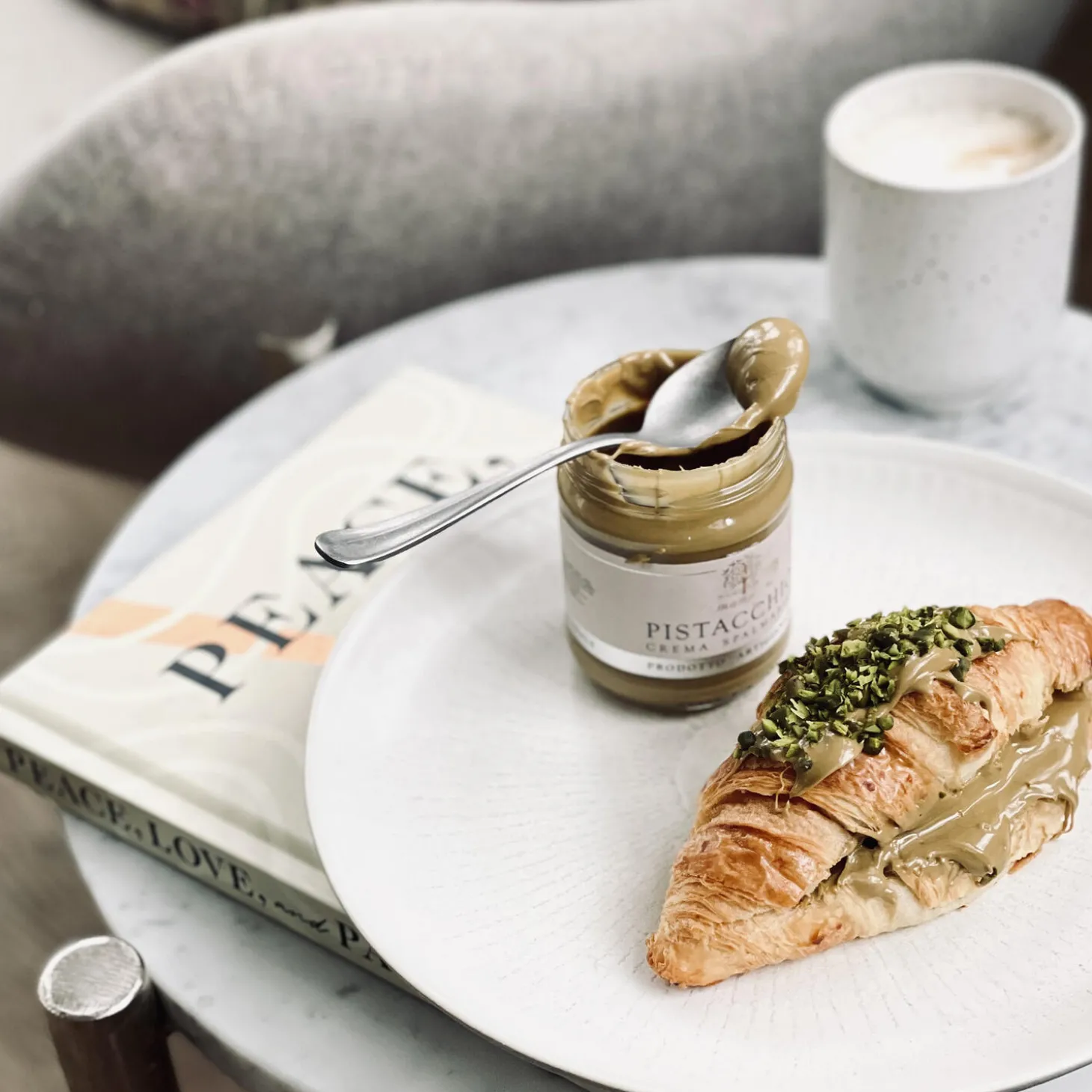- Ingredienser: 50% lækre italienske pistacienødder, 40% sukker, 10% ekstra jomfruolivenolie, en knivspids salt