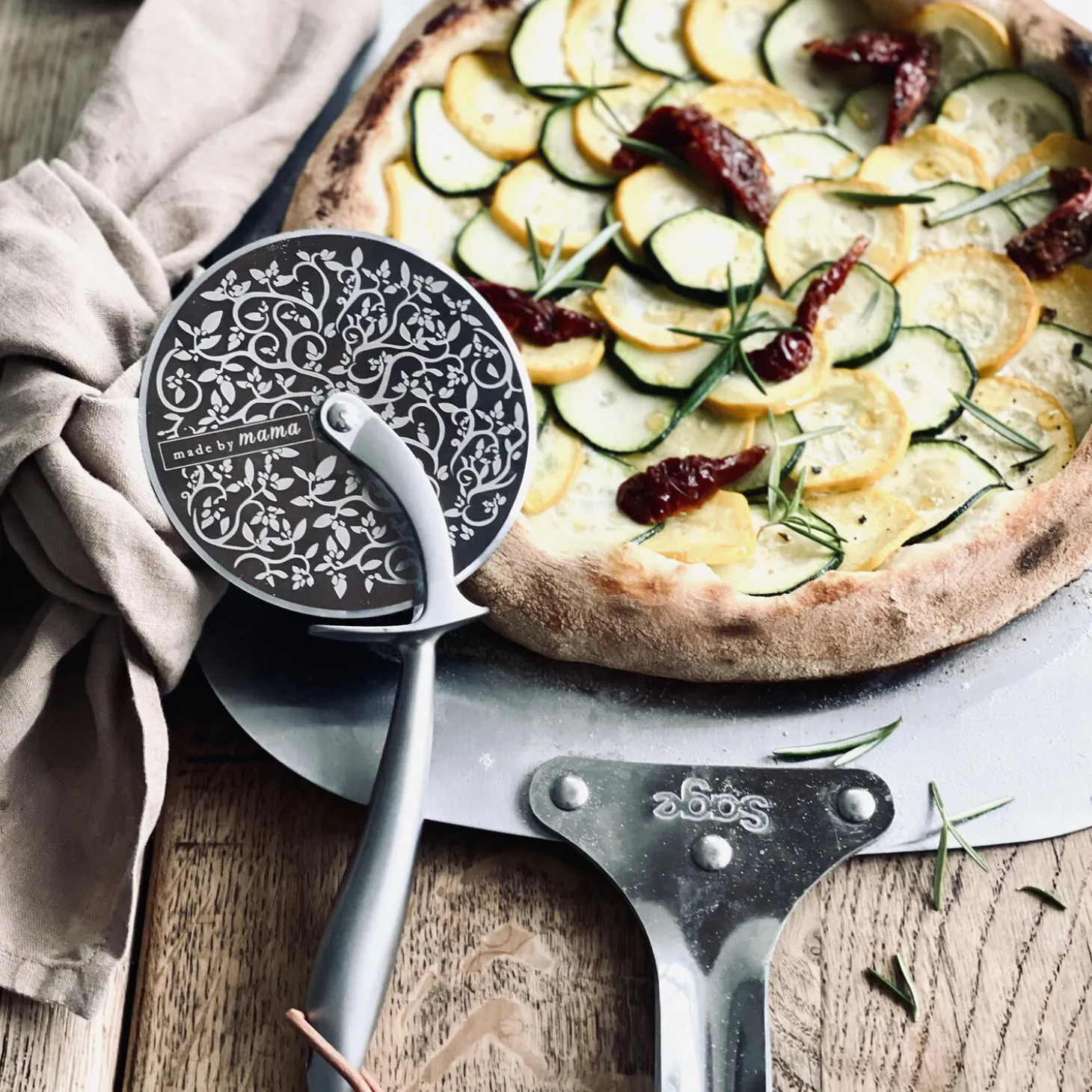 Skær din pizza ud med stil! Nu bliver vores pizzakit fuldendt med vores eget design af det optimale pizzahjul. Det er lavet af rustfrit stål og tåler maskinopvask. Hjulets størrelse gør udskæringen lettere, og robustheden med de to arme, der holder hjulet, sikrer en lang levetid. En perfekt gaveidé til alle dem, der elsker pizza.